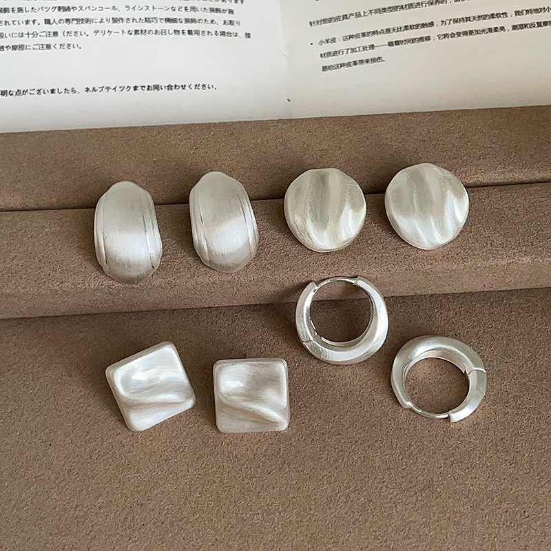 几何磨砂拉丝圆形方形银色耳钉女冷淡风个性时尚潮流百搭耳环耳饰