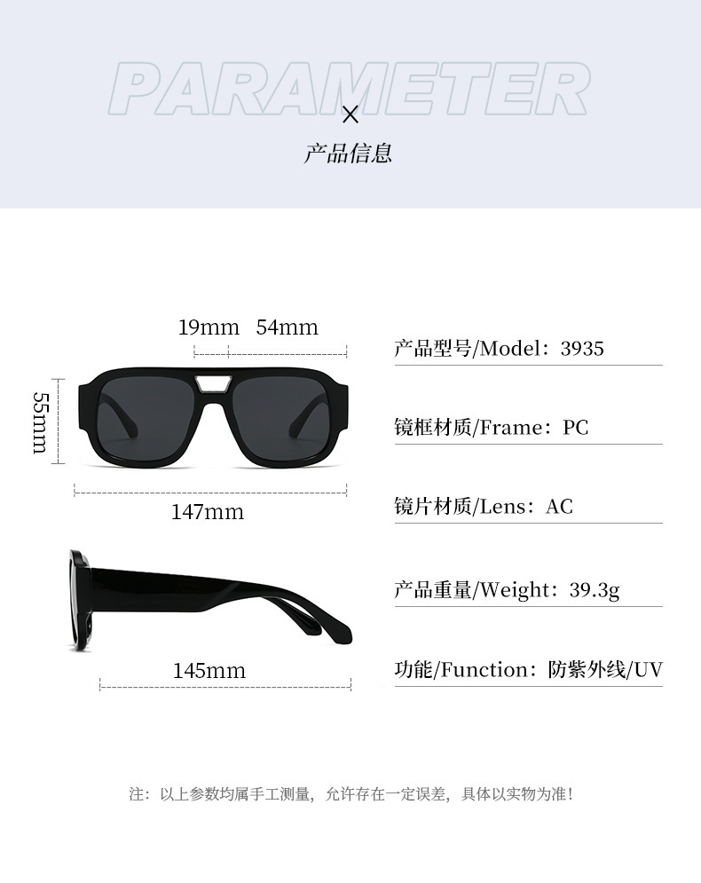 25新款双梁个性墨镜女欧美复古ins方框太阳镜潮网红街拍防晒时尚Z