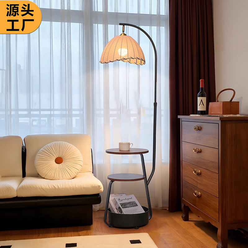 アンティークフレンチレトロコーヒーテーブルフロアランプリビングルーム雰囲気ランプ一体型ランプソファベッドルームベッドサイドテーブル収納の横に