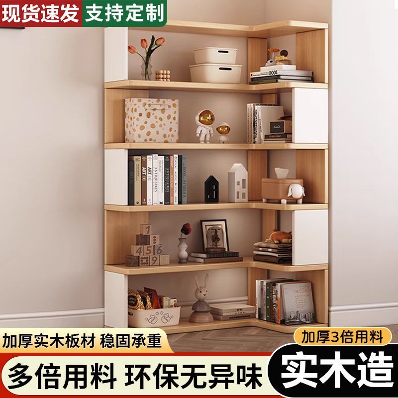 本棚 シンプル本棚 無垢材多層収納キャビネット コーナーコーナーキャビネット 収納ラック 床置き本棚 無垢材フルコーナーキャビネット