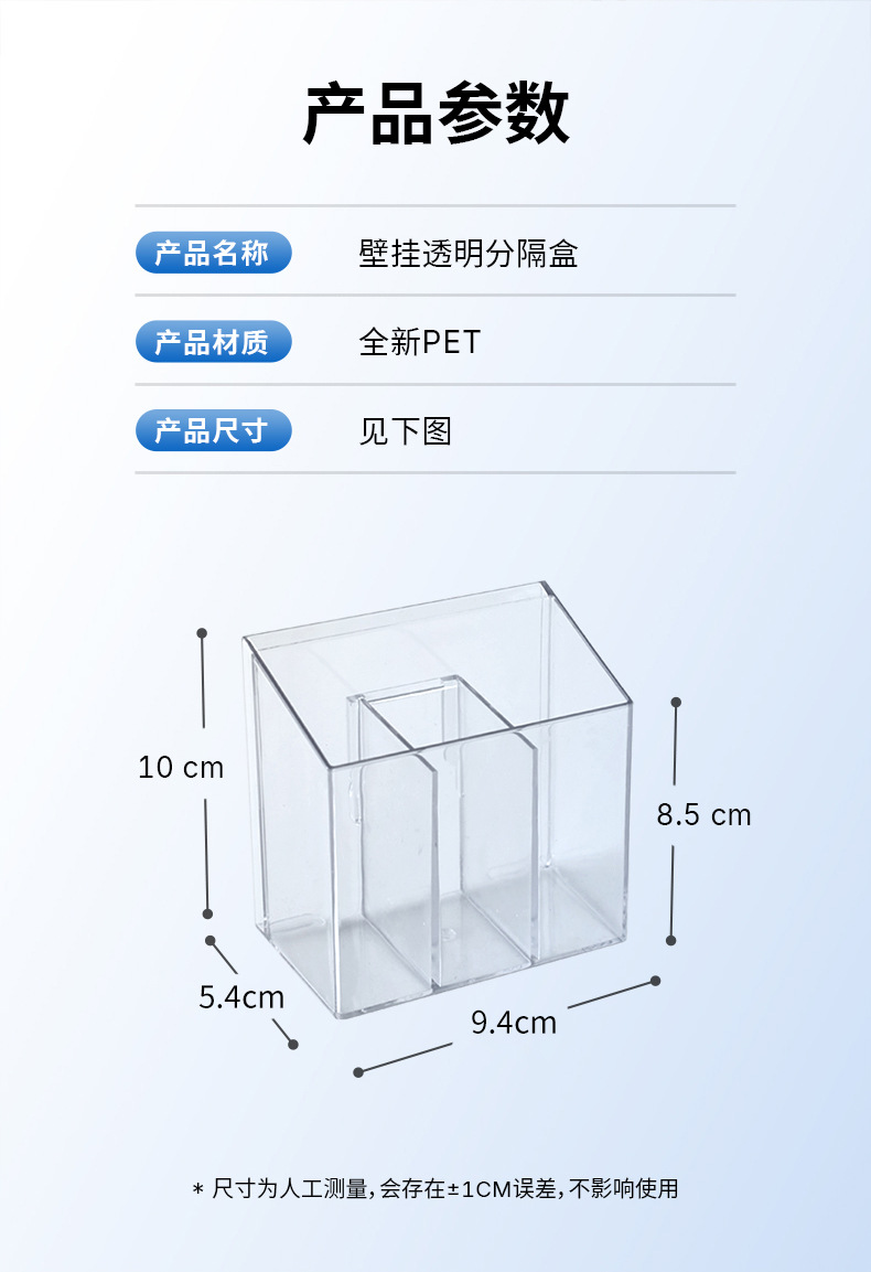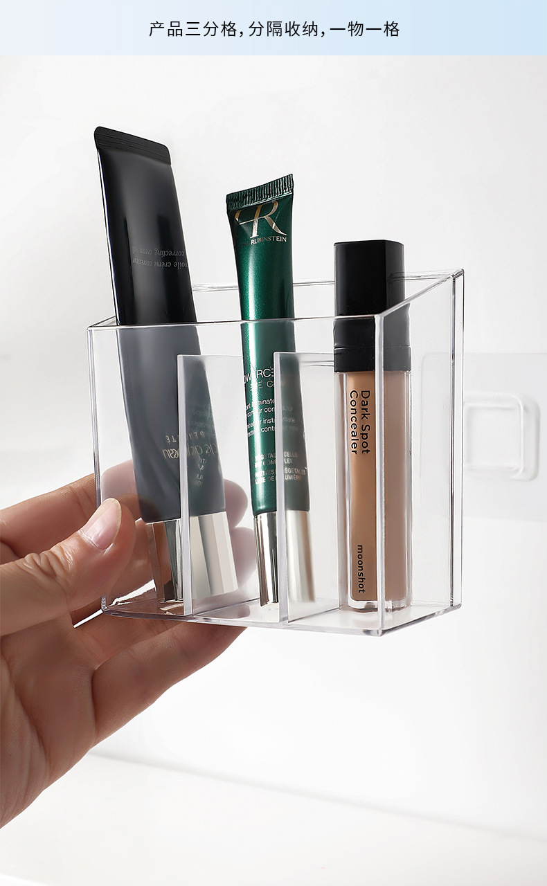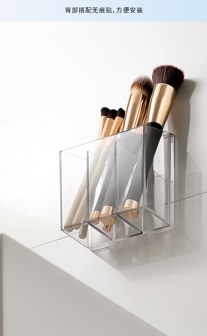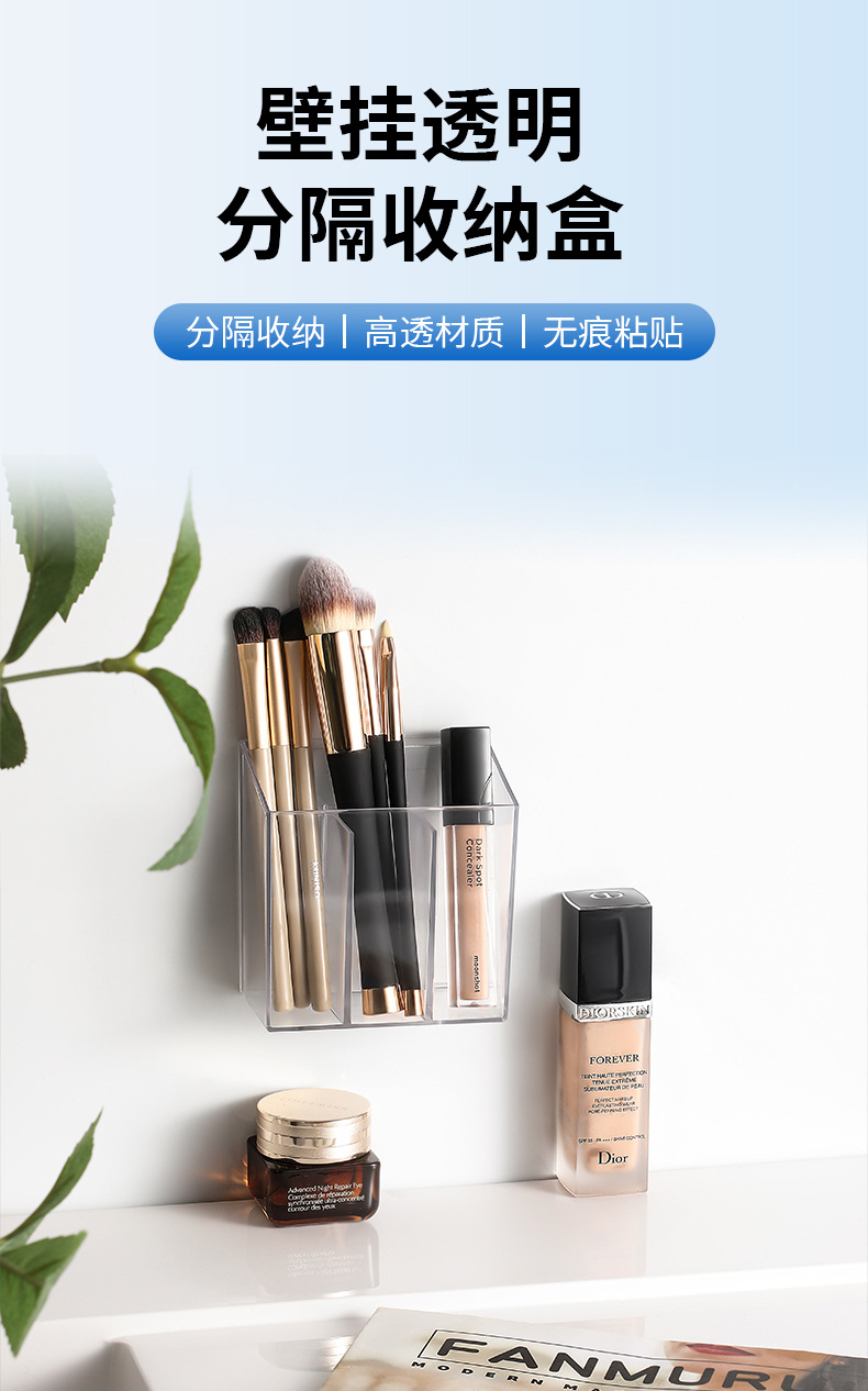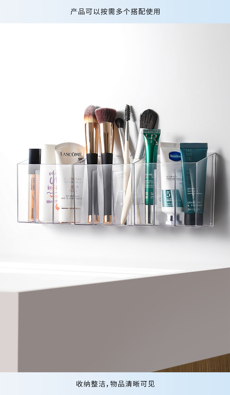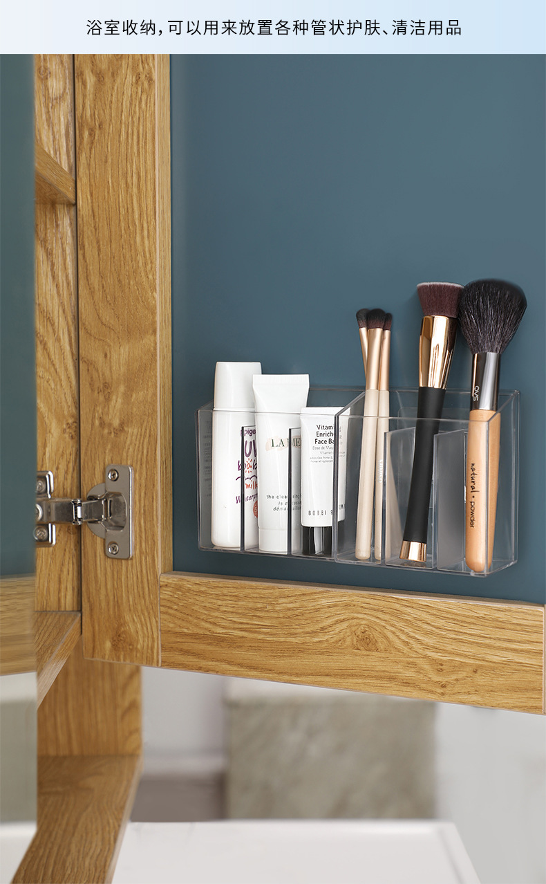 商品名称:壁挂分格收纳盒镜柜三分格化妆刷整理盒多功能分类斜口透明储物盒
