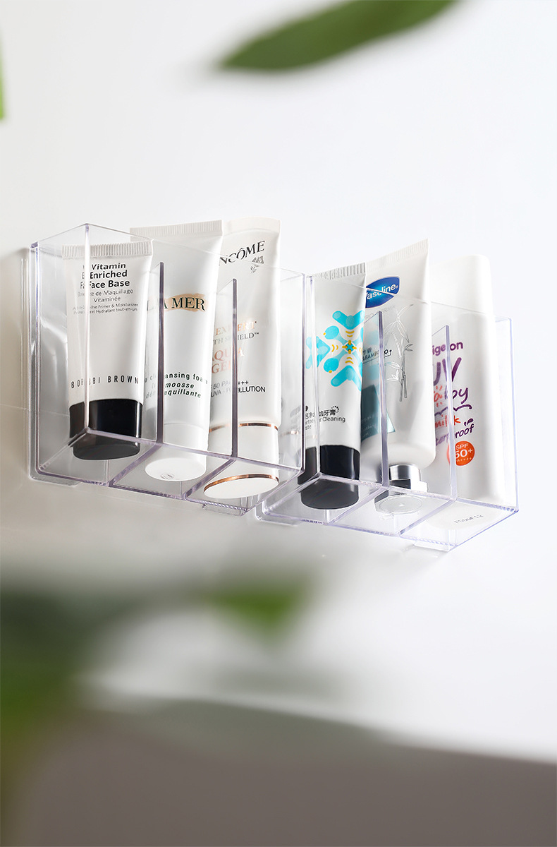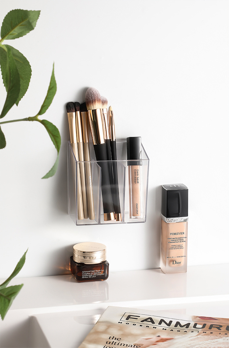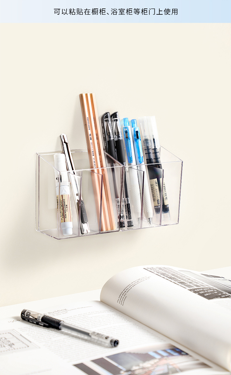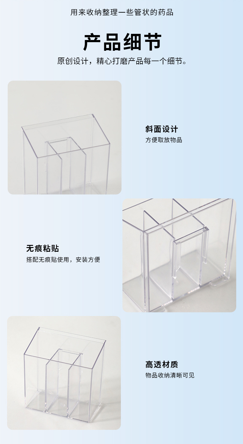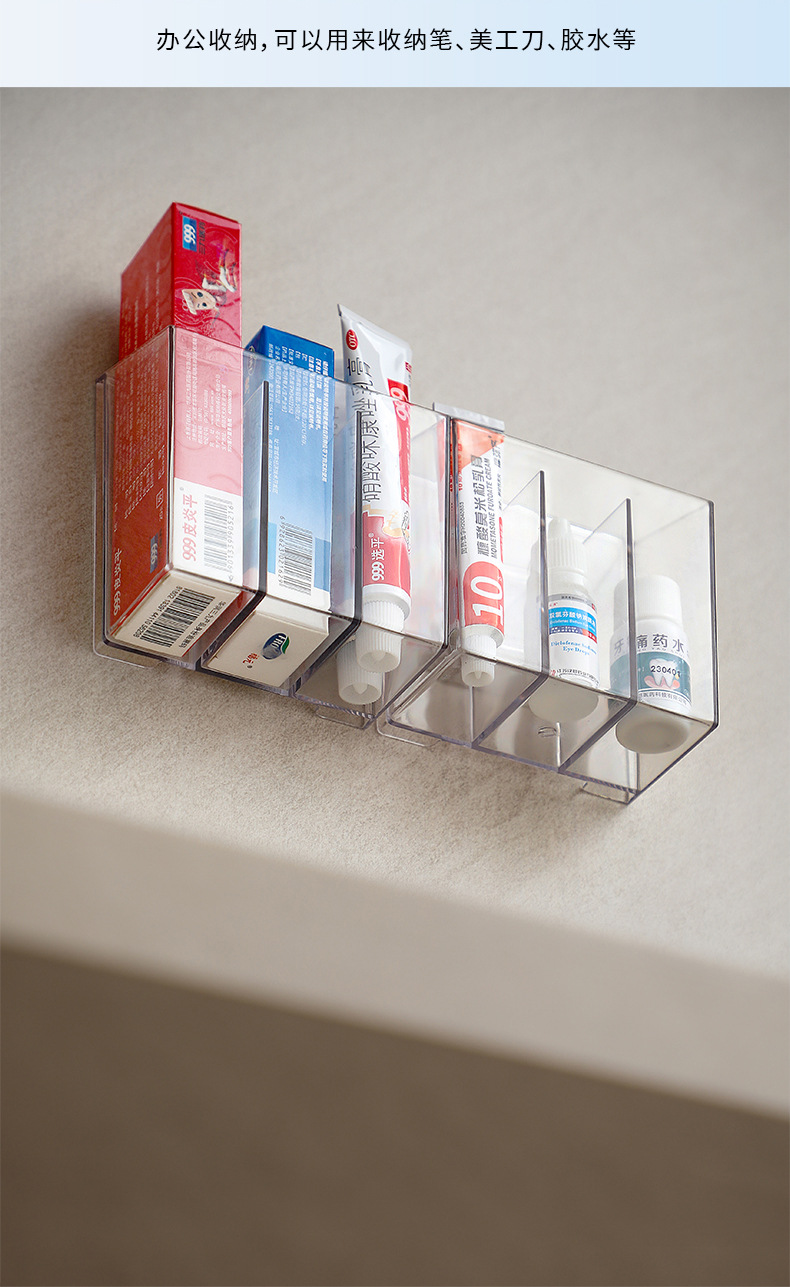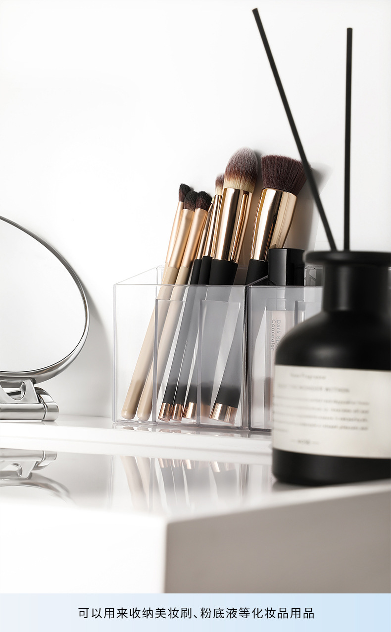 商品名称:壁挂分格收纳盒镜柜三分格化妆刷整理盒多功能分类斜口透明储物盒