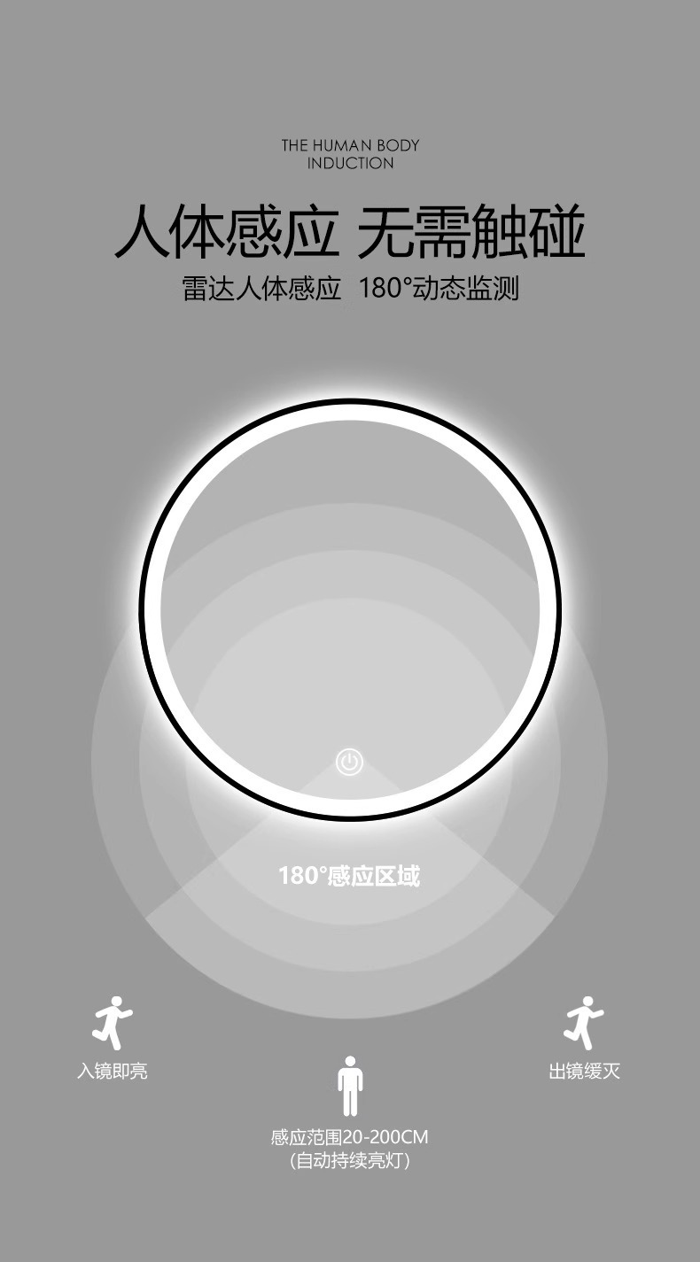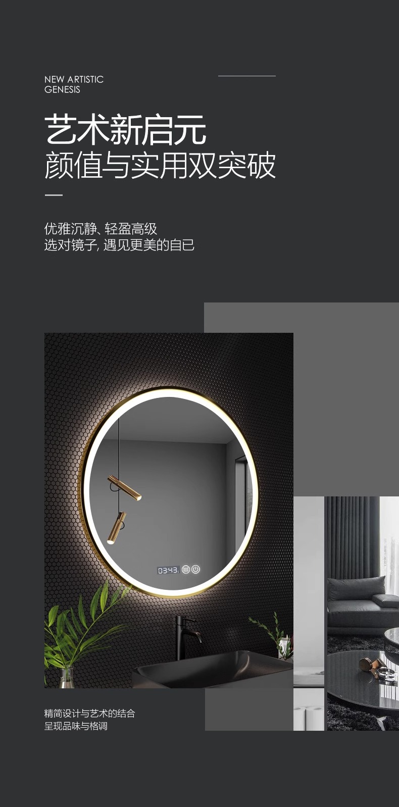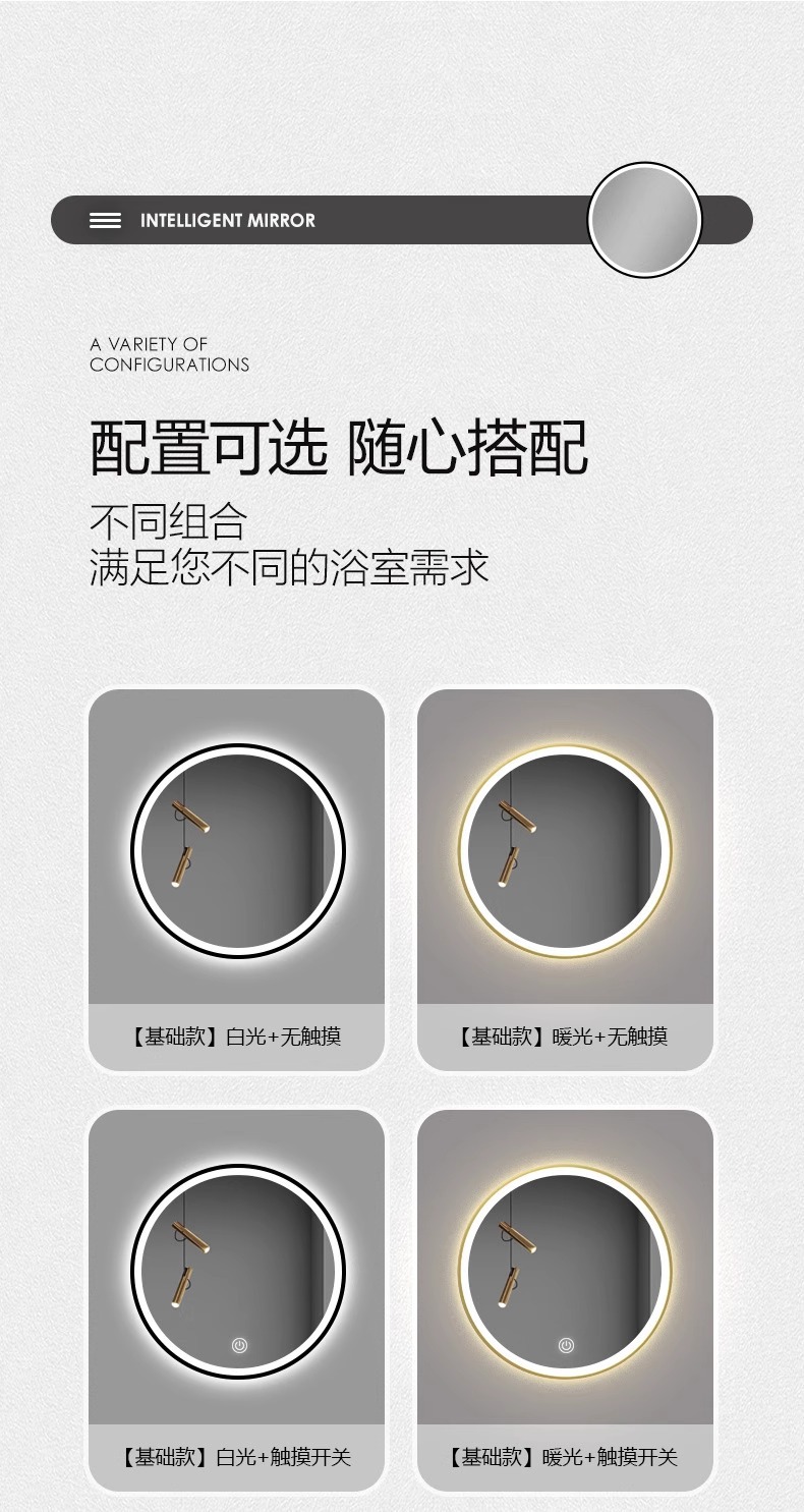 圆镜子壁挂除雾洗手台智能洗漱镜子洗澡间灯镜挂墙带灯浴室镜小众