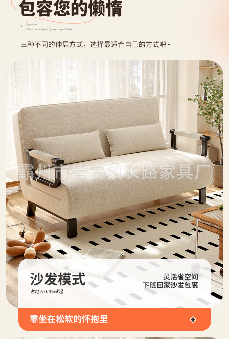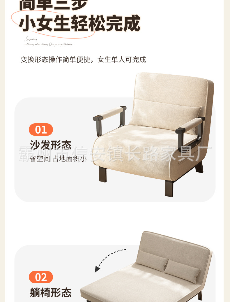 折叠沙发床可躺可睡可调节靠背沙发客厅阳台懒人沙发床单双人沙发