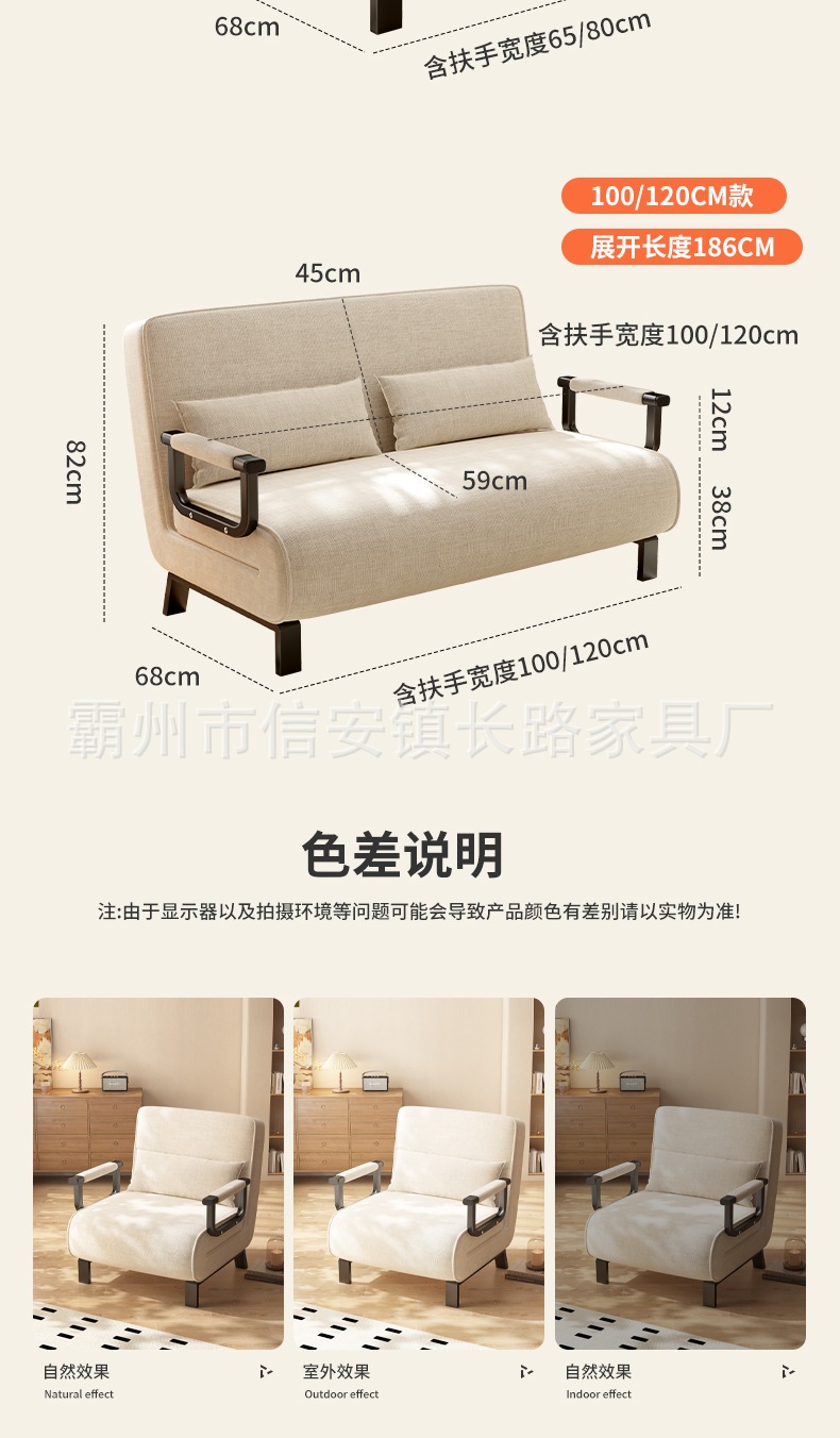 折り畳みソファーベッド両用折り畳み多機能昼休みソファー布芸マンションネット赤簡易小戸型ソファーベッド