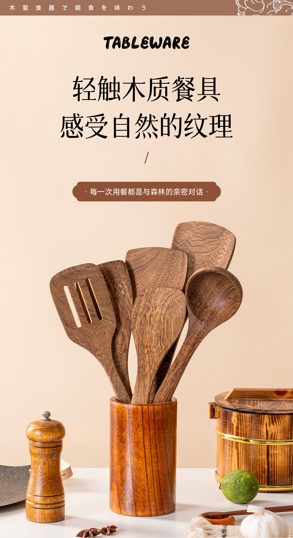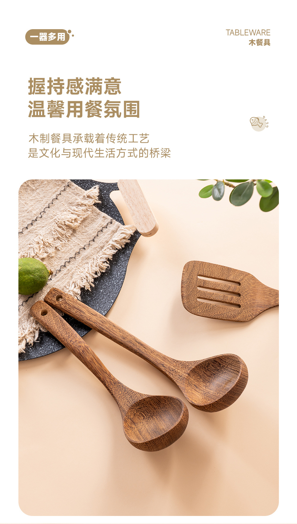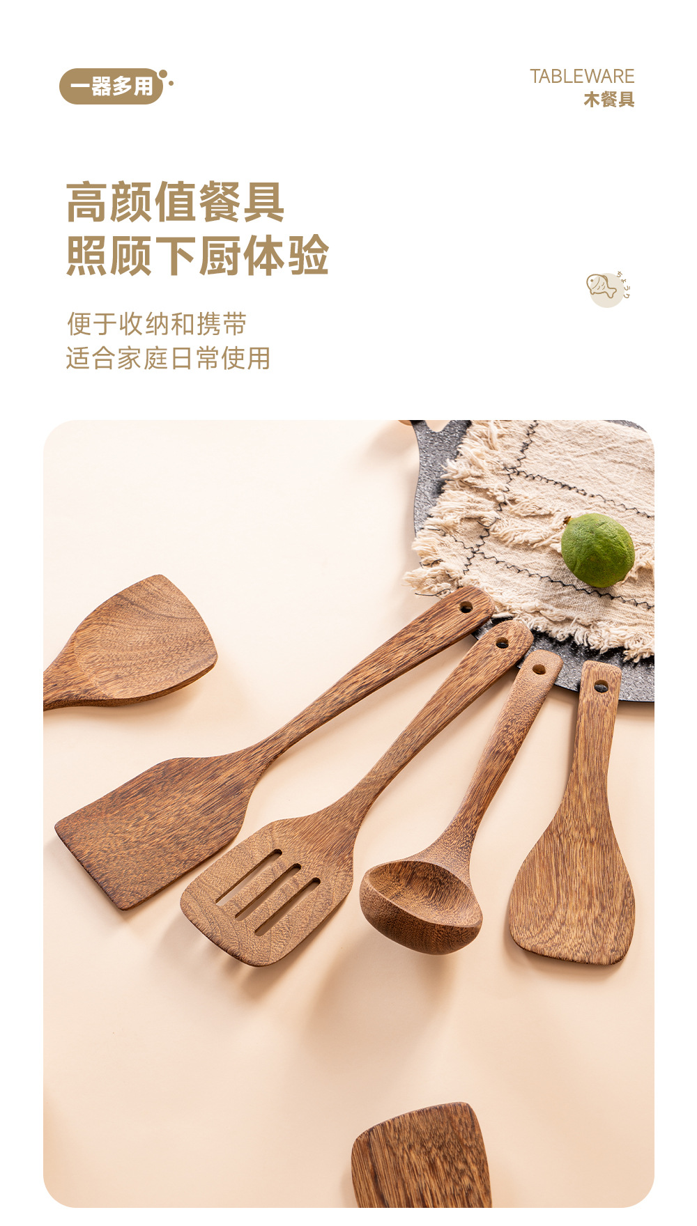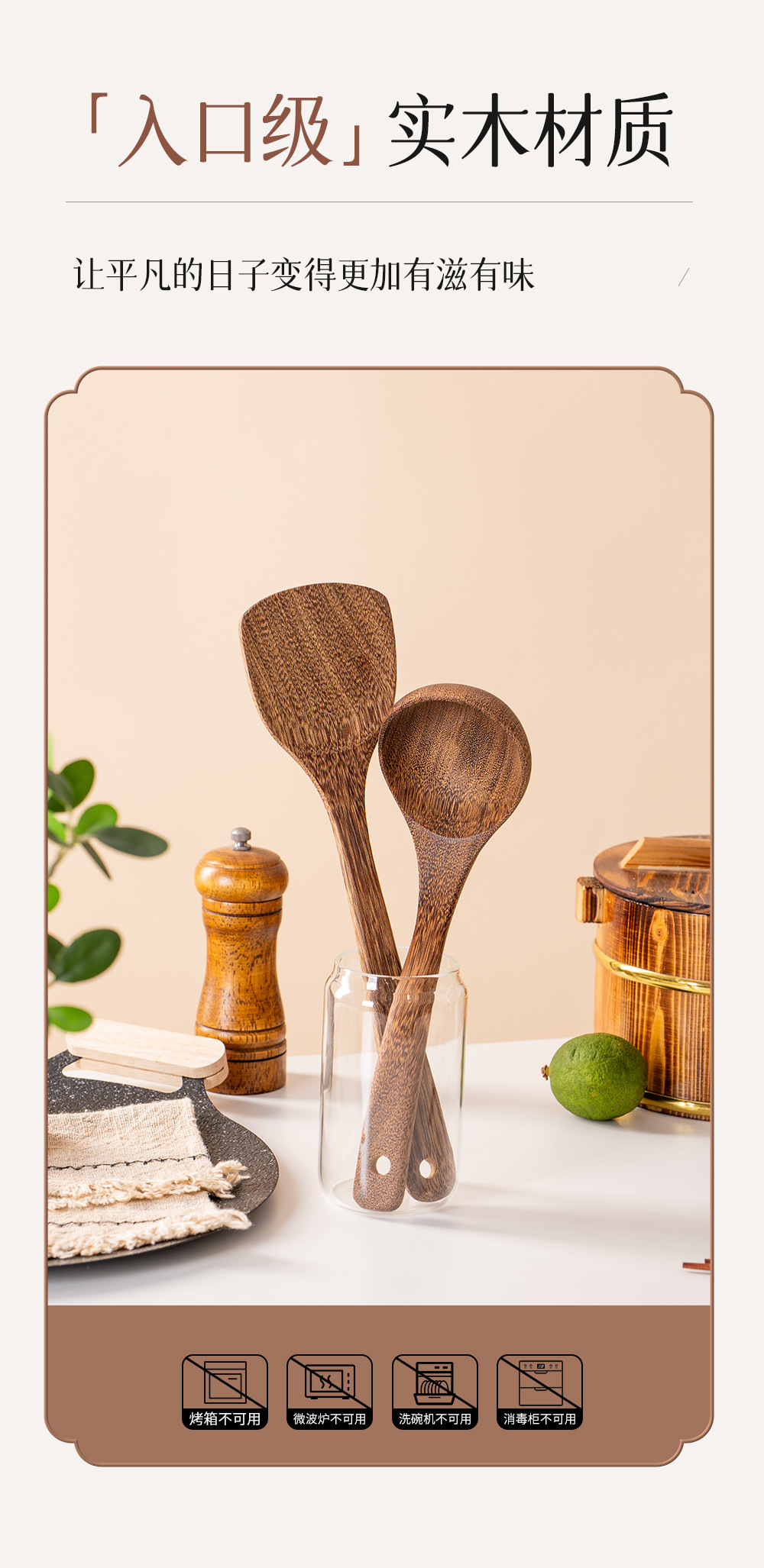 跨境烹饪厨具长柄锅铲汤勺套件满木沙拉勺亚马逊实木勺铲