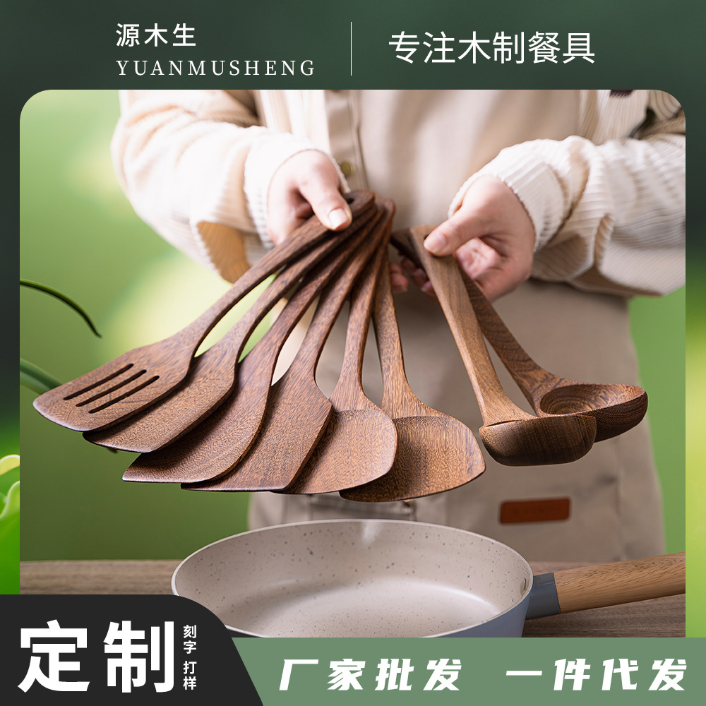 鸡翅木厨房家用防烫漆柄加长不粘锅炒铲菜铲锅铲木汤勺厂家批发
