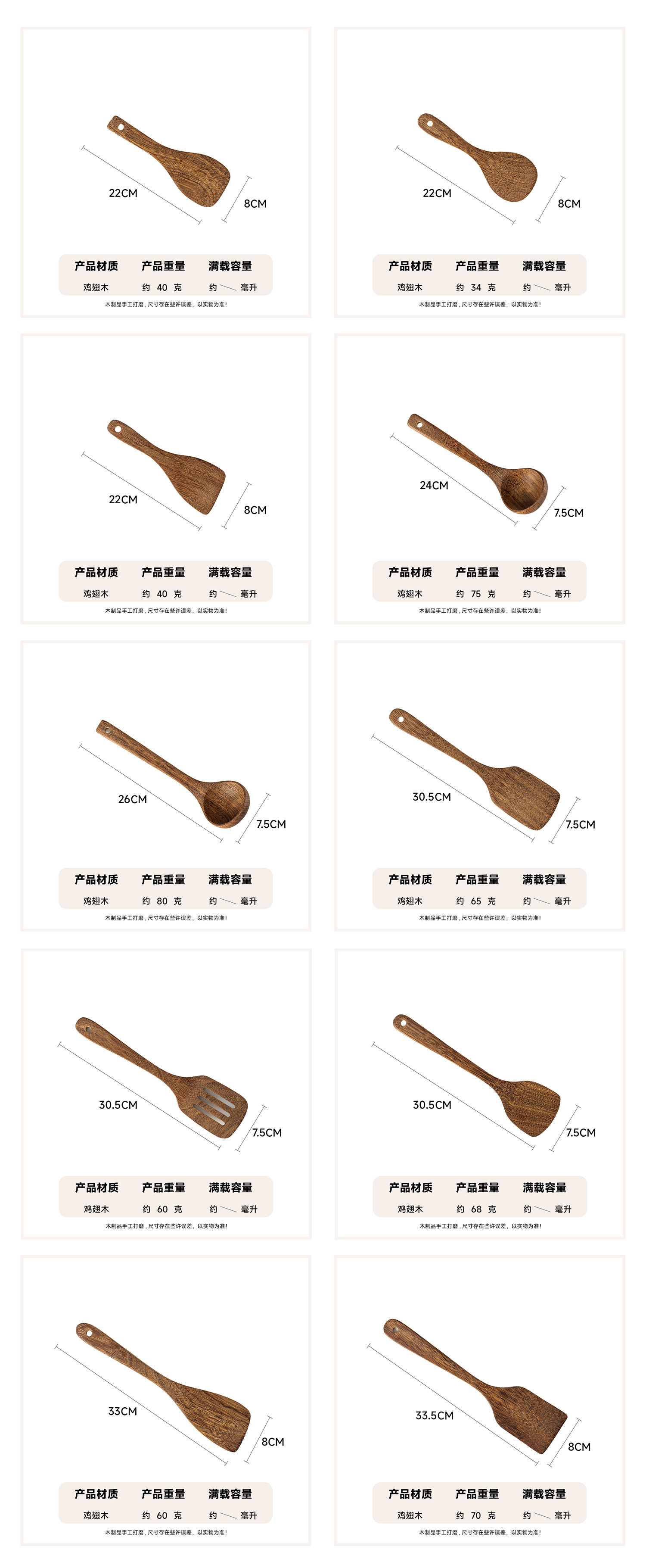 相思木厨具十件套长柄耐高温烹饪锅铲漏勺家用木汤勺饭勺捞面勺