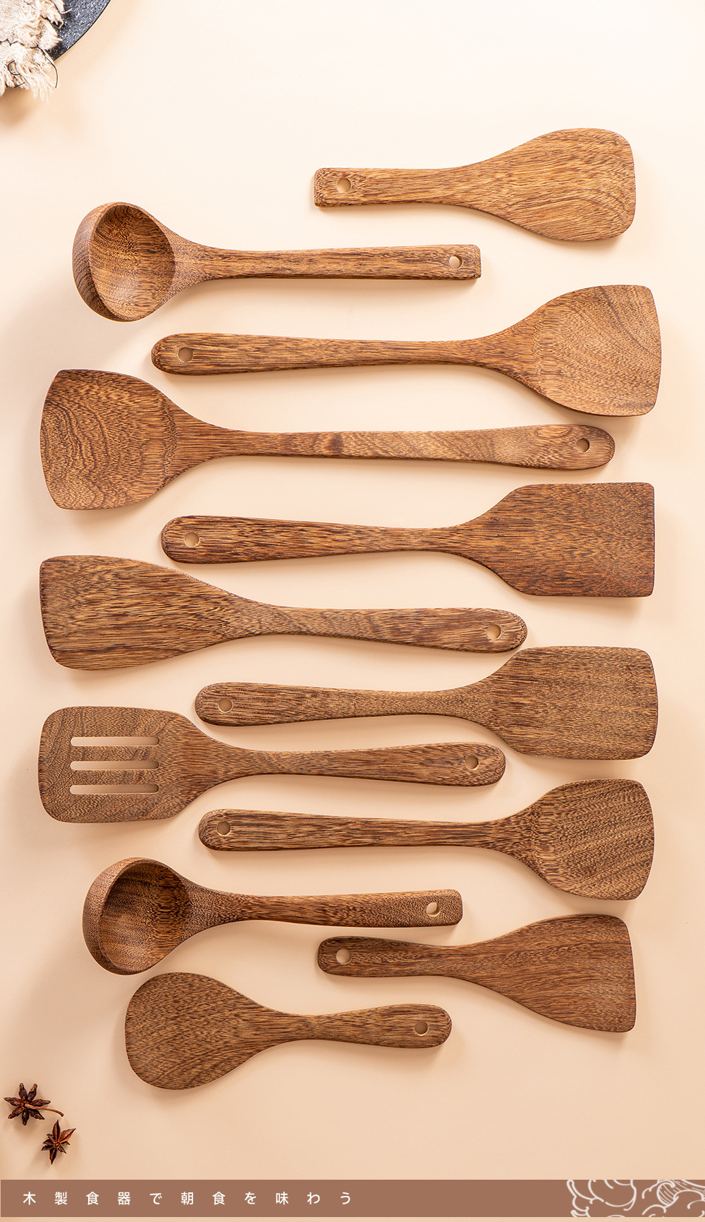 工場直販 Kemu ノンスティック特殊木製スパチュラ キッチン用品 炒め物スパチュラ スープ ライススプーン 調理セット 注文卸売