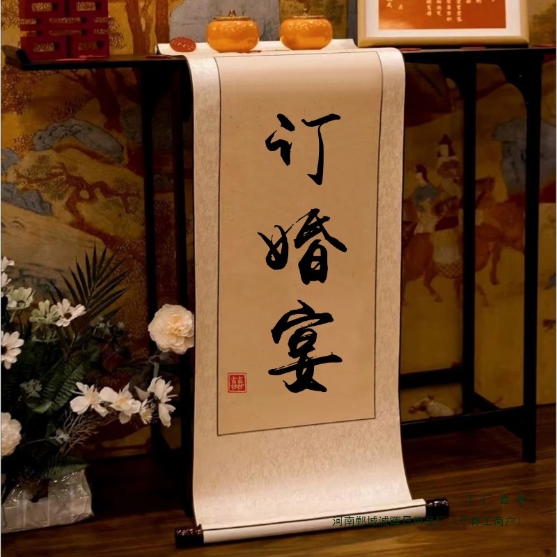 カスタマイズされた結婚式の本、婚約書、結婚式の装飾品、中国の古代スタイルの模造手書きの自筆発表スクロール、吊り下げ軸