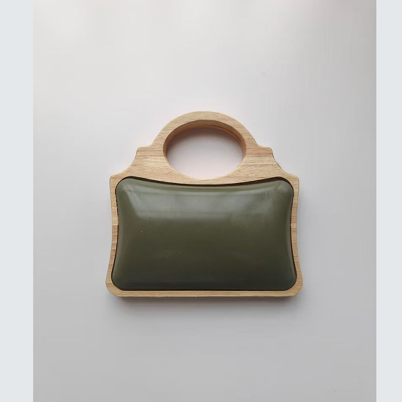 菱形樹脂製ヘッド木製クリップハンドバッグ、木製金具ヘッド、キャンディーカラーの無垢材クリップフレーム、木製ハンドル、中国風