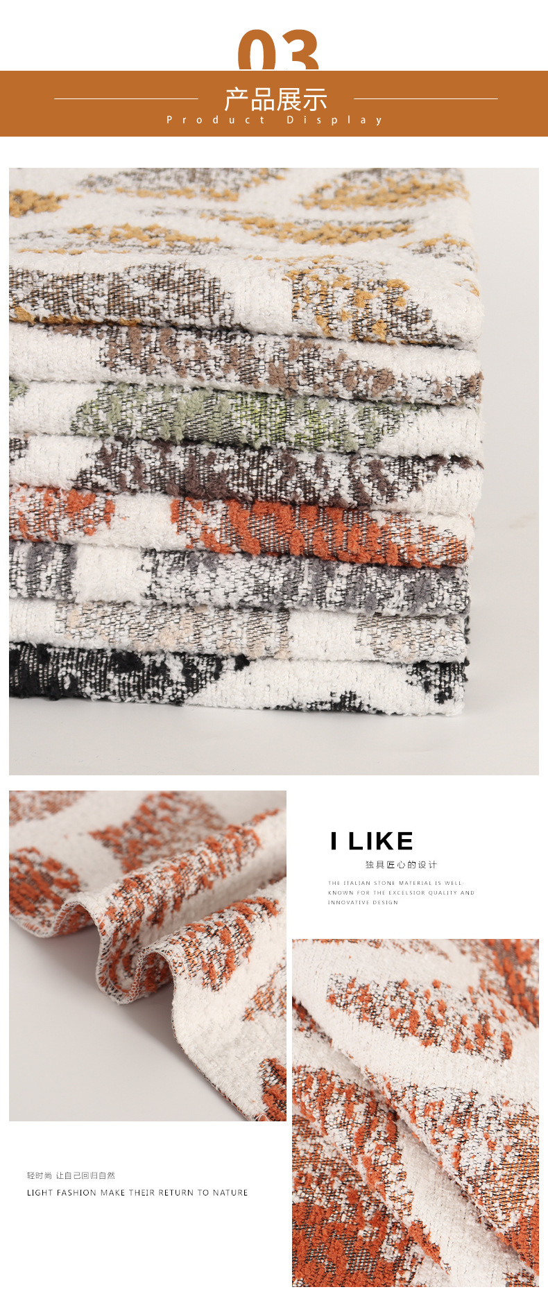 北欧几何线条图案圈圈纱提花沙发抱枕布料耐磨耐脏色织提花面料