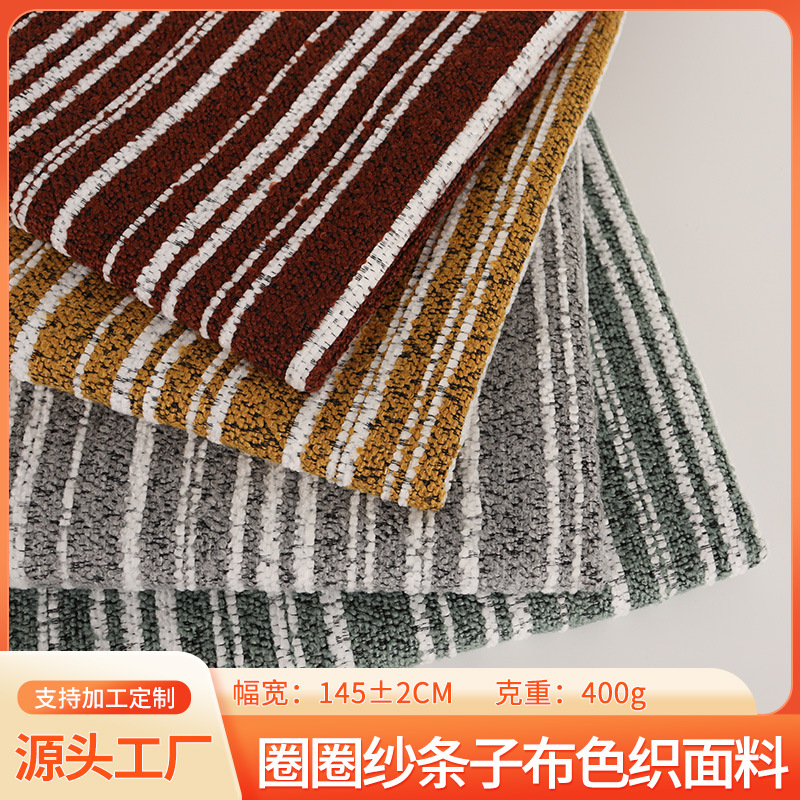 条纹粗麻混纺圈圈纱面料加厚条纹色织布沙发布料坐垫套布面料抱枕