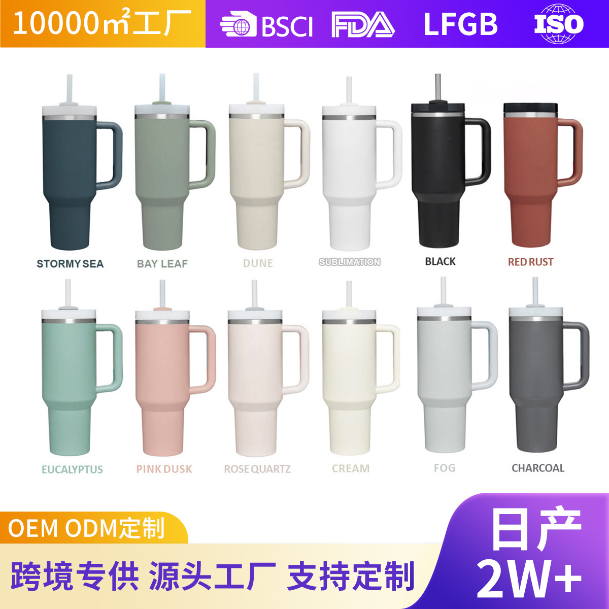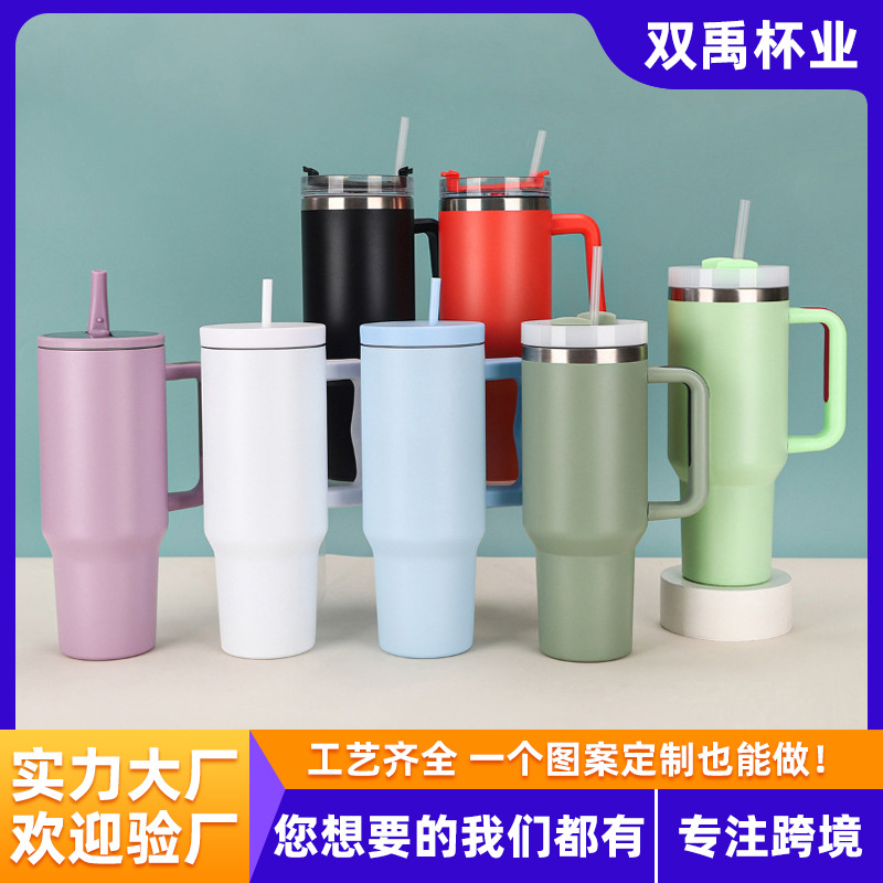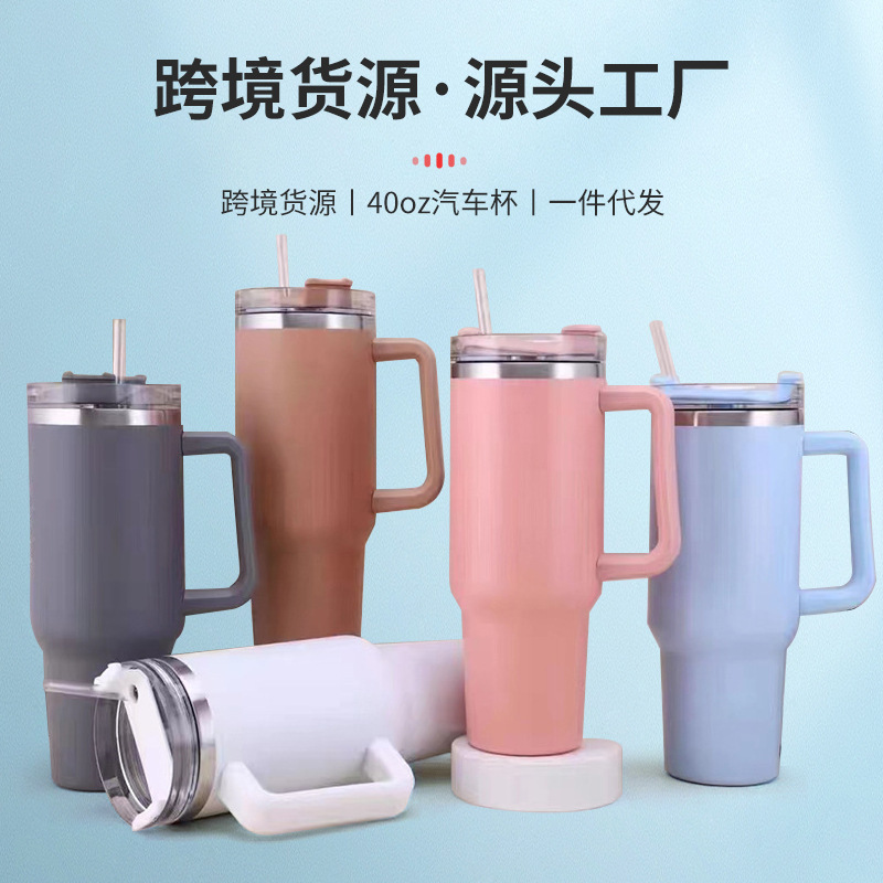 跨境304不锈钢巨无霸保温杯大容量40oz汽车杯带手柄吸管冰霸水杯