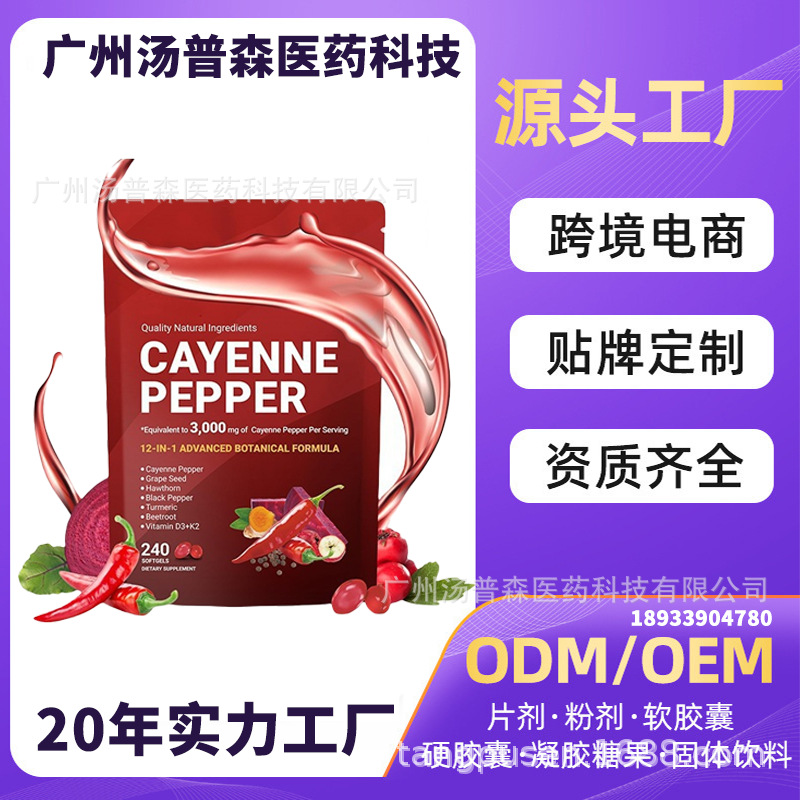辣椒素软胶囊成人健康膳食营养补充剂跨境源头厂家Cayenne Pepper