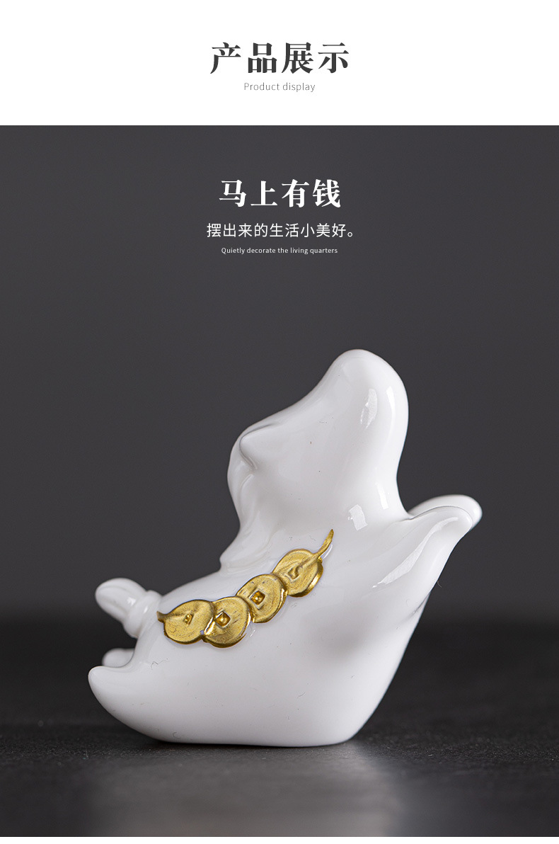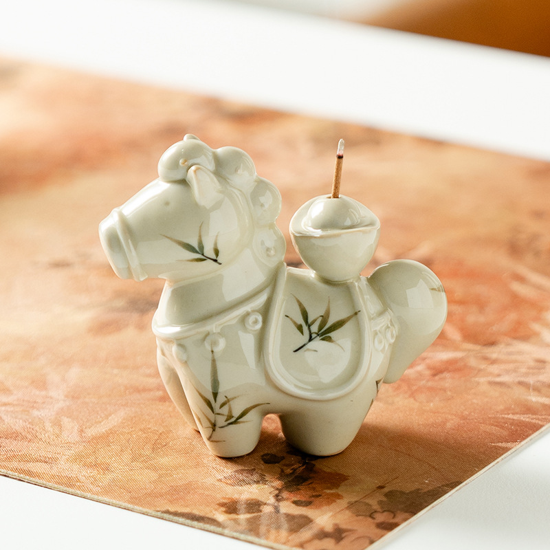 新中式纯手绘筱竹马上有钱香插可爱小马家用创意茶道零配件陶瓷