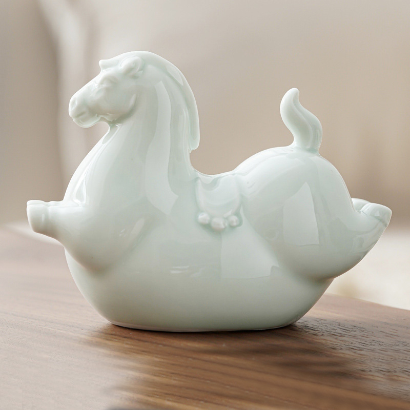 クリエイティブな陶器の揺れる馬の置物、卓上、茶卓、書斎のインテリア、すぐに緑の馬が現れる、越境工芸品、ギフト