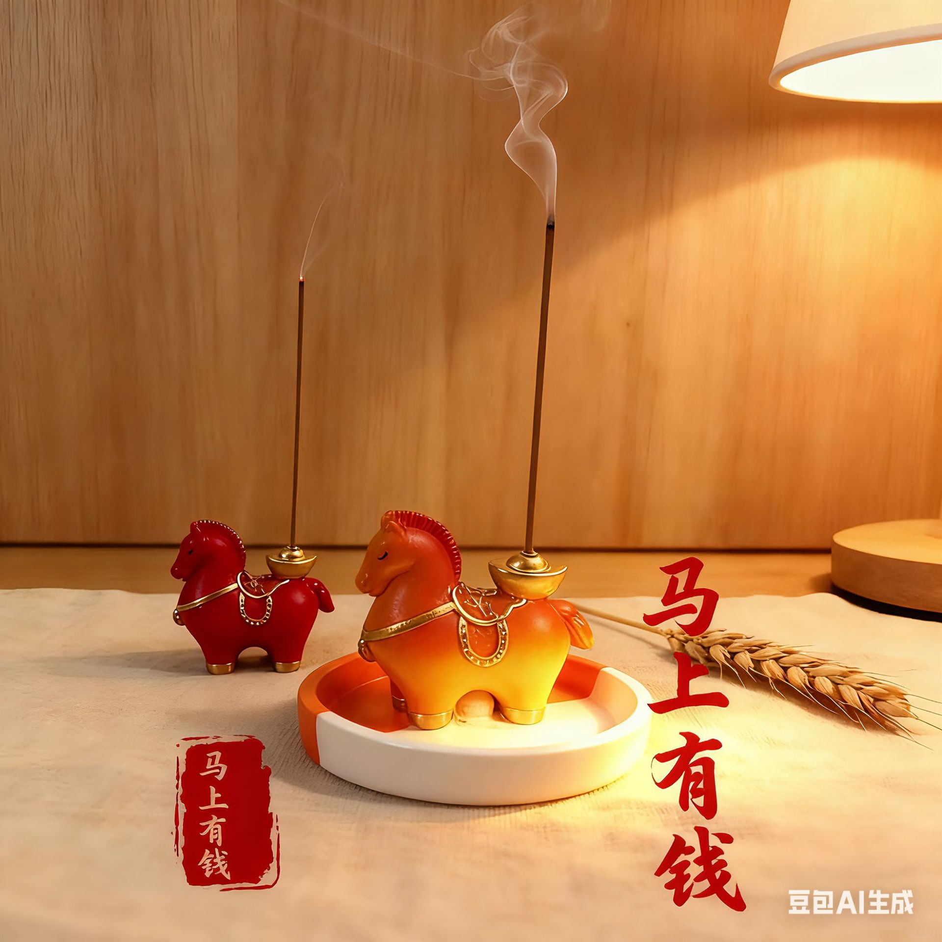 可爱马年创意礼物马上有钱陶瓷摆件香薰炉香插礼品家用线香座香道