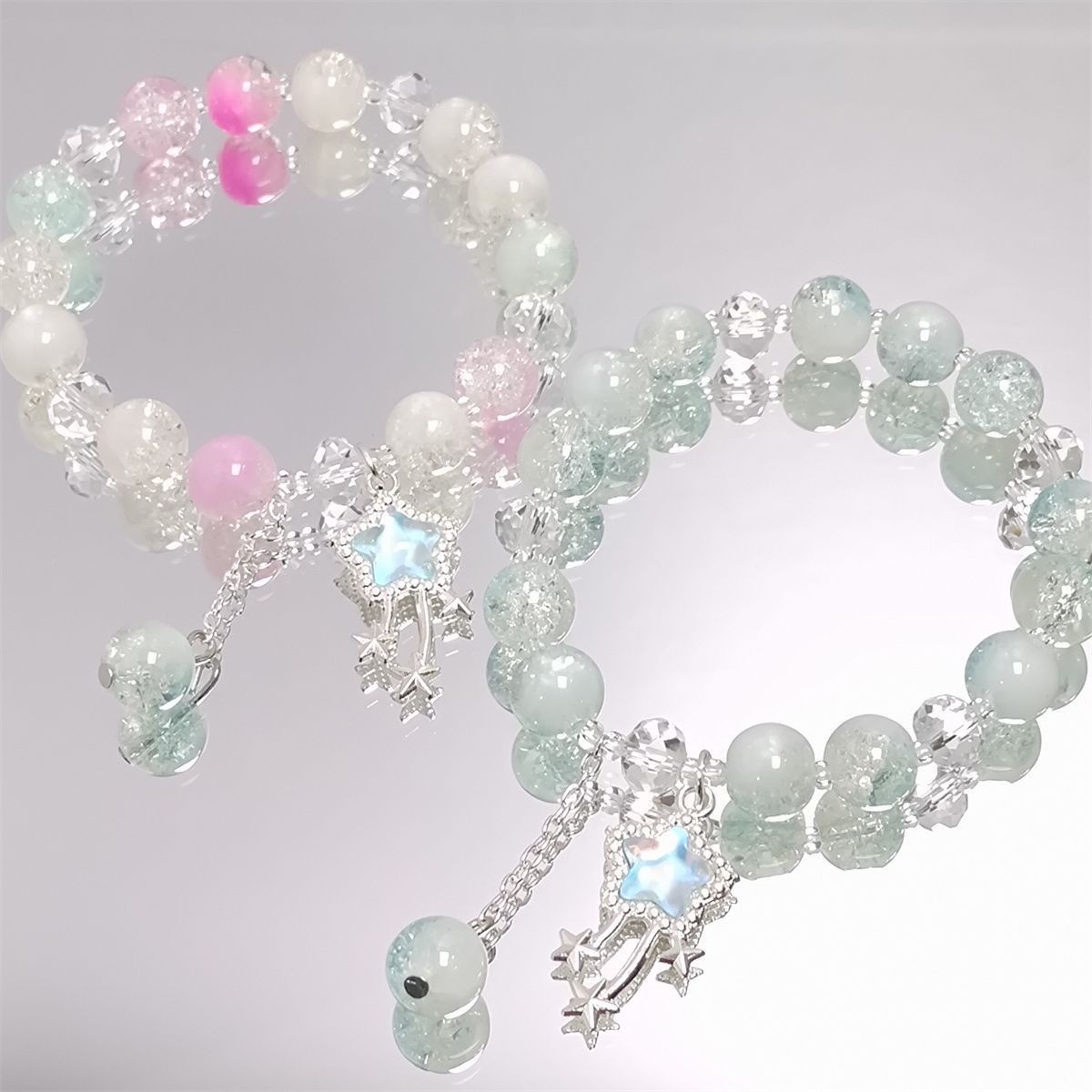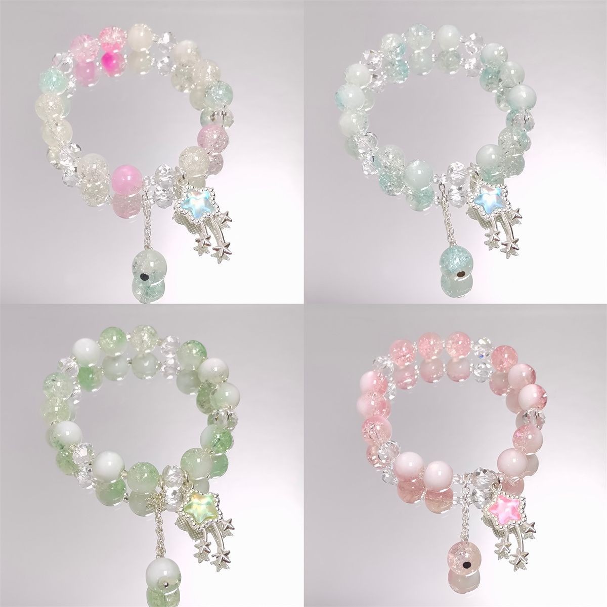 瑠璃水晶ブレスレットグラデーション氷裂珠串ビーズブレスレット甘美で可愛い学生ブレスレット