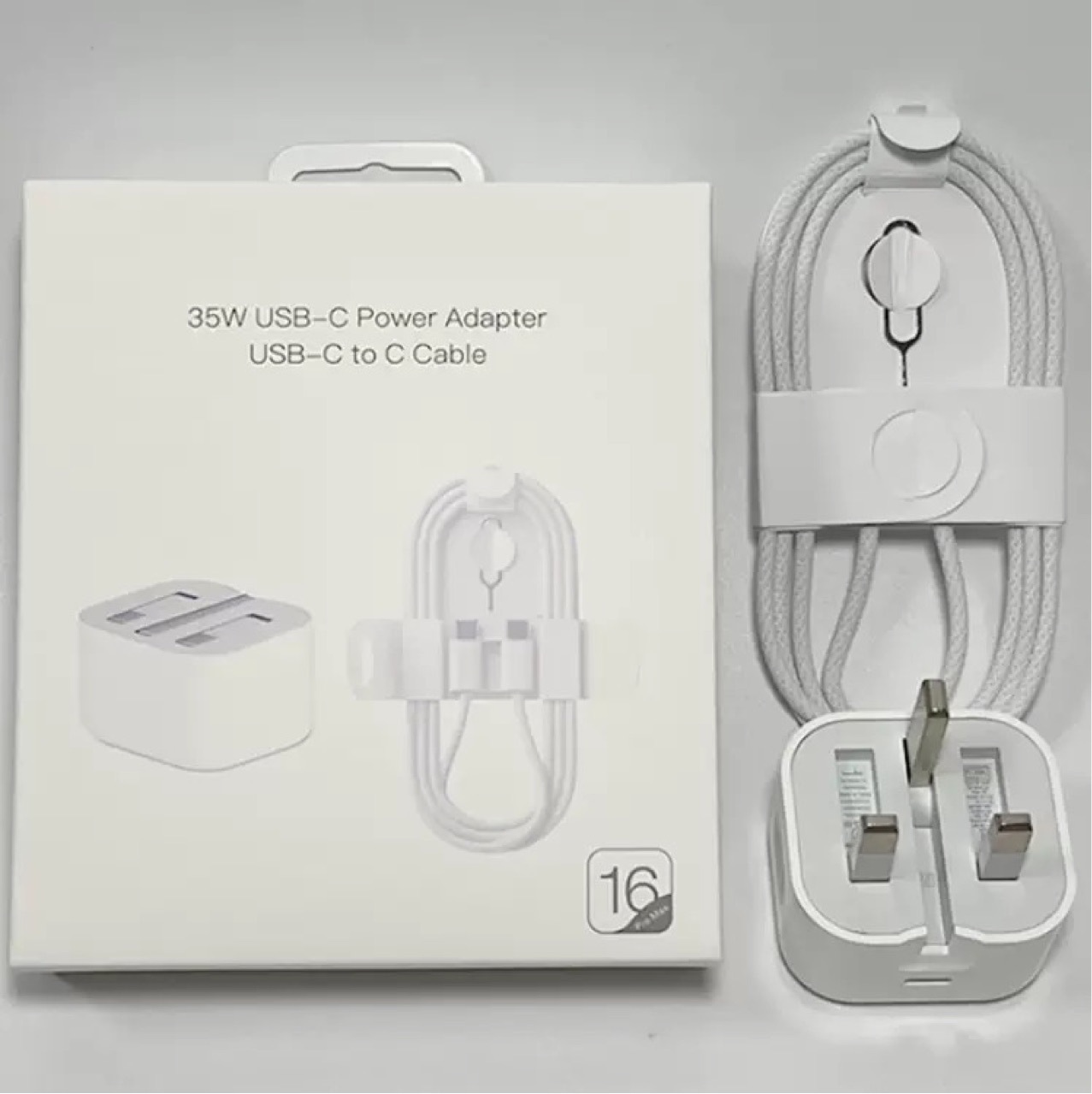 英国標準 35 ワット編組ケーブル充電器セット米国 iphone15/16pm 高速充電データケーブル充電ヘッドに適しています
