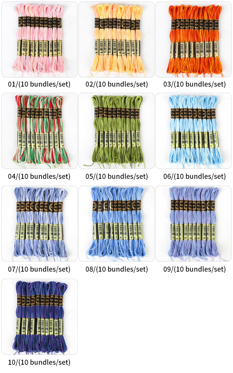 10件/套分级分段染色绣花线彩虹十字绣刺绣DIY刺绣手工编织链绣线