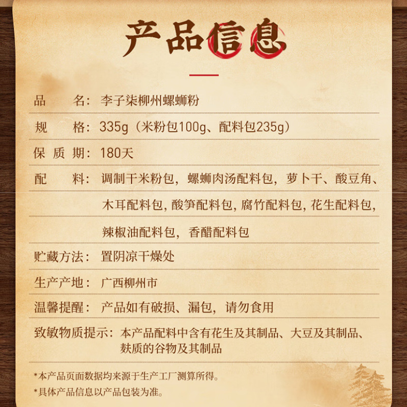 李子柒螺蛳粉335g柳州螺蛳粉 广西螺蛳粉米粉米线酸辣粉夜宵粉丝
