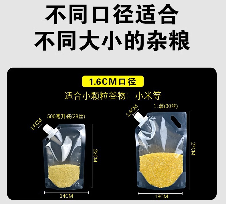 大口径五谷杂粮收纳袋大米袋子吸嘴密封分装家用红豆啤酒包装手提