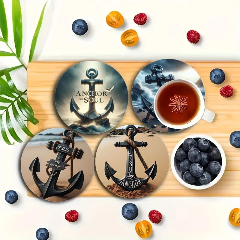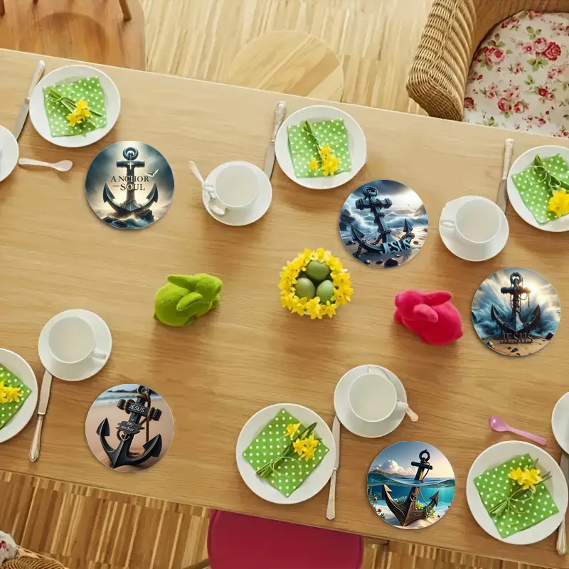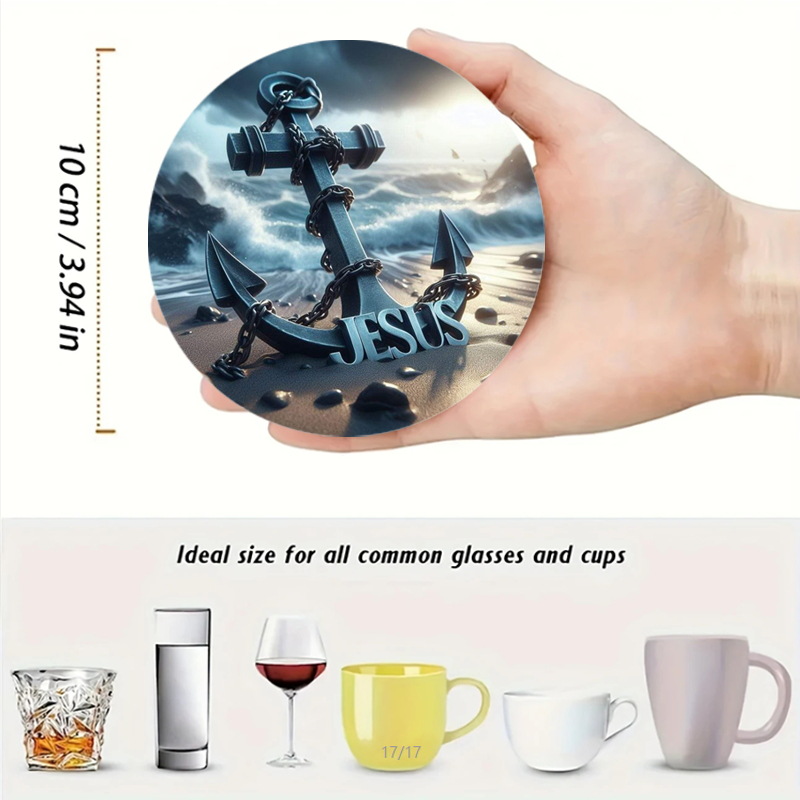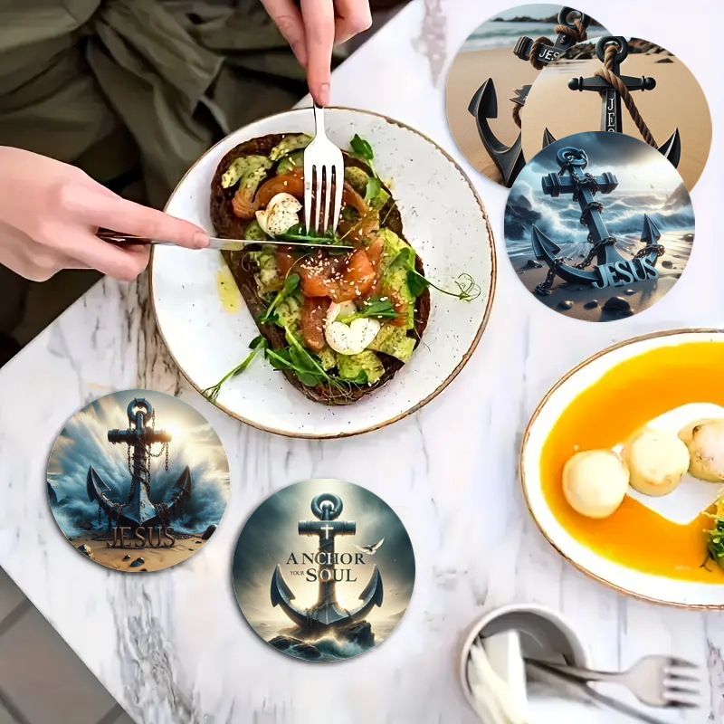 跨境新品6件套木质杯垫耶稣主题轮船锚海洋风格主题酒吧桌面装饰