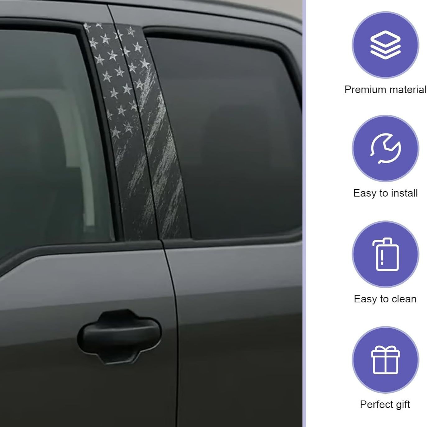 2件套汽车B柱贴纸,复古美式国旗爱国纹身贴,防水防刮边饰装饰
