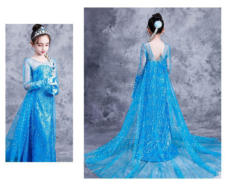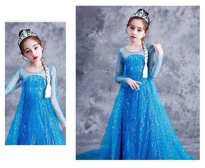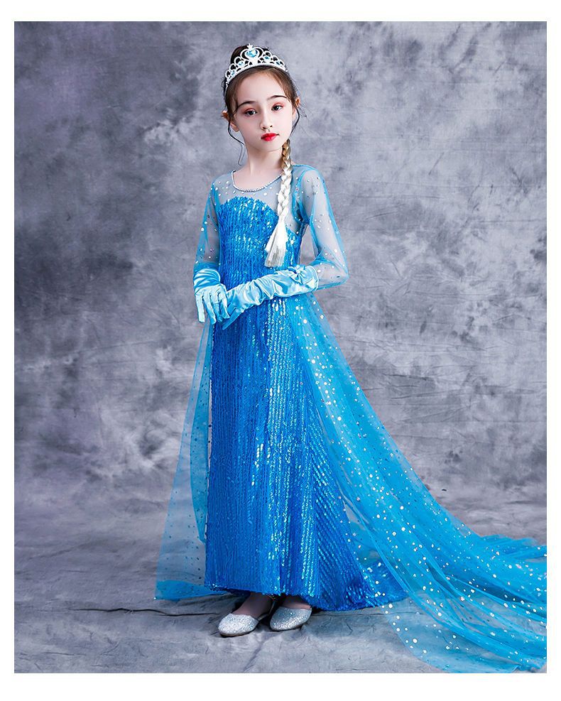 アナと雪の女王 女の子用プリンセスドレス エルサ スパンコール メッシュドレス 子供服 フォーマルドレス スカート ロングスリーブ チューブトップ