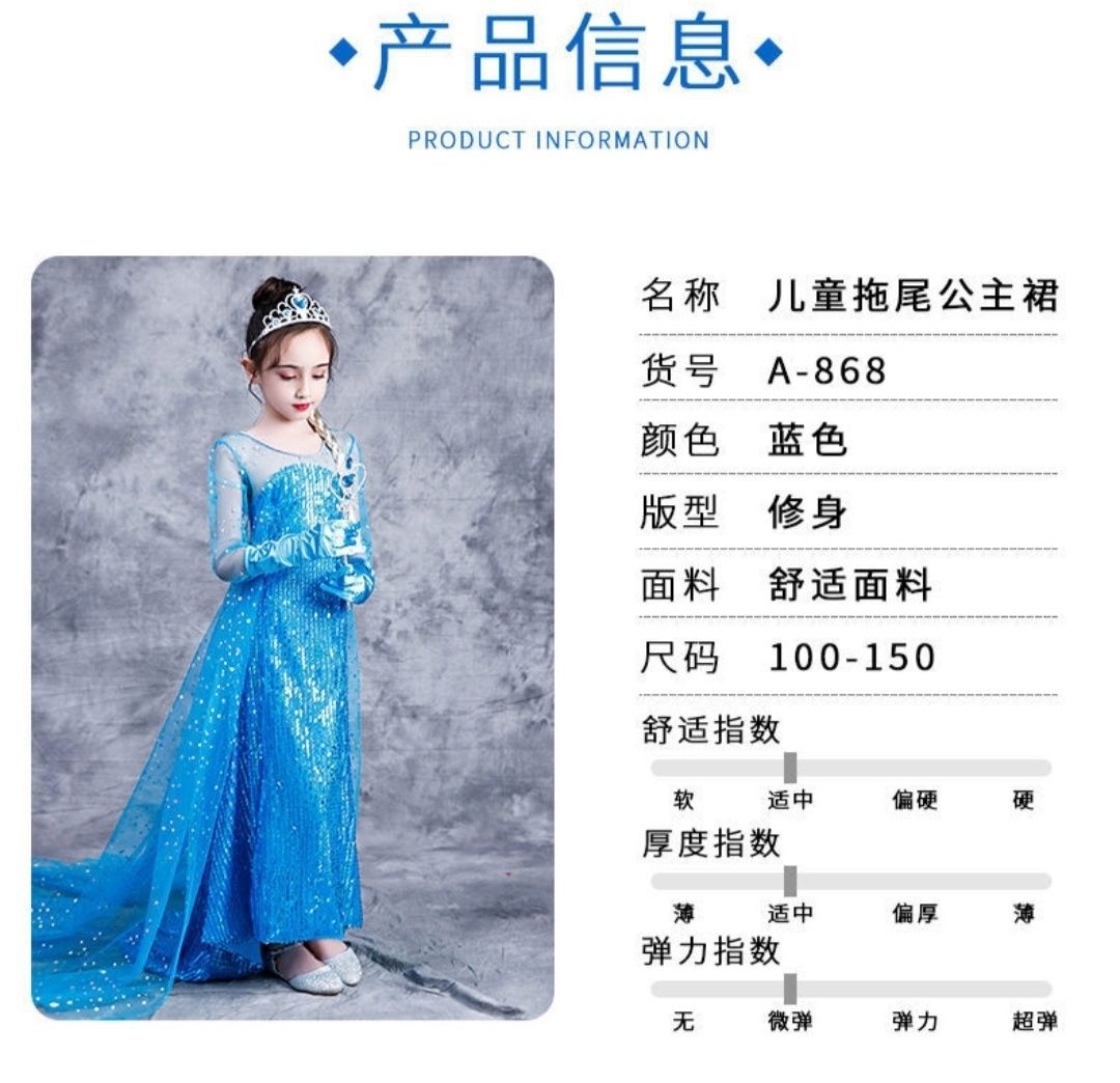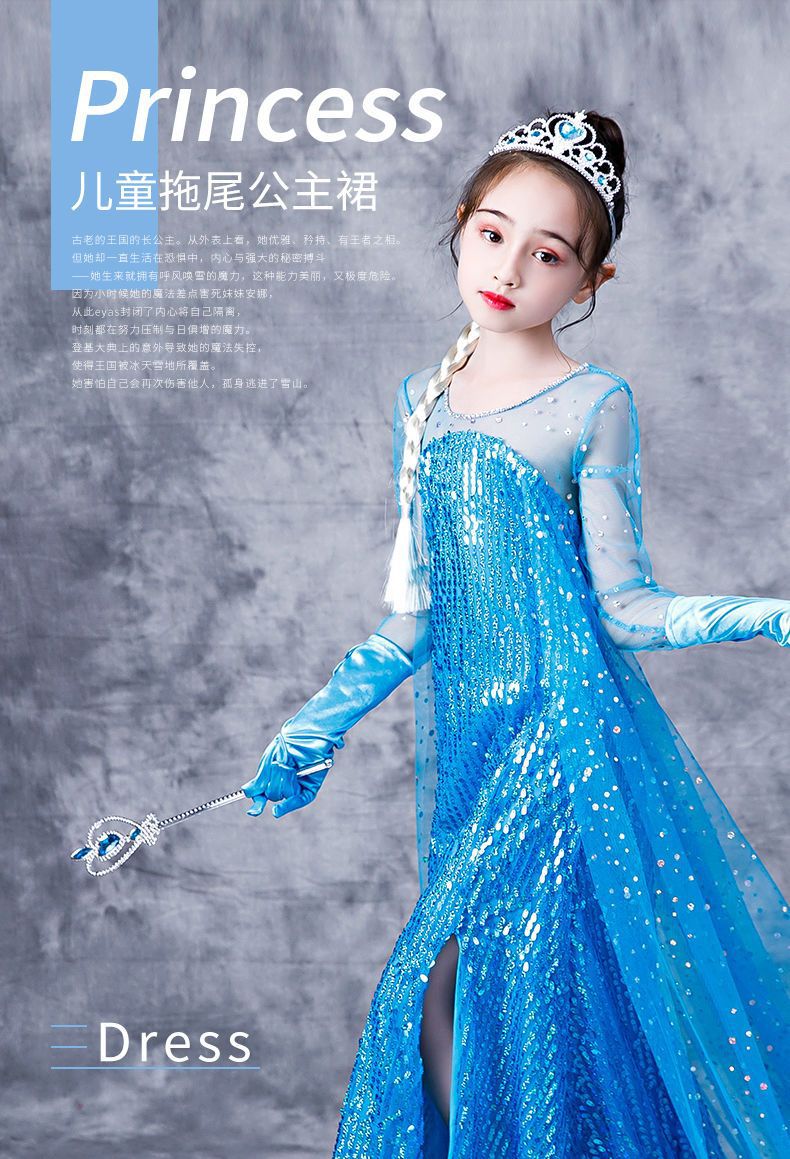 冰雪儿童公主裙奇缘爱沙女王女童连衣裙春夏款艾莎爱莎纱拖尾礼服
