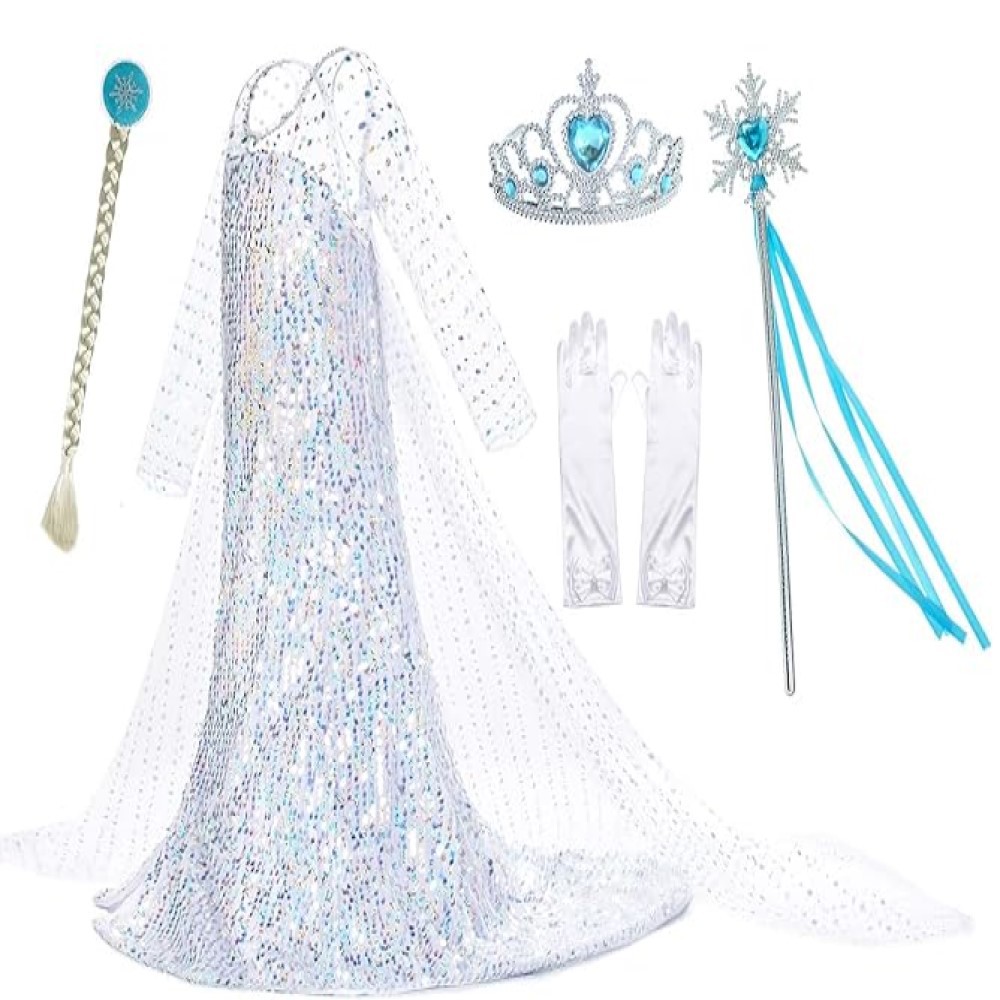 エサ王女ワンピースアナと雪の女王2長袖の白いスパンコールドレス