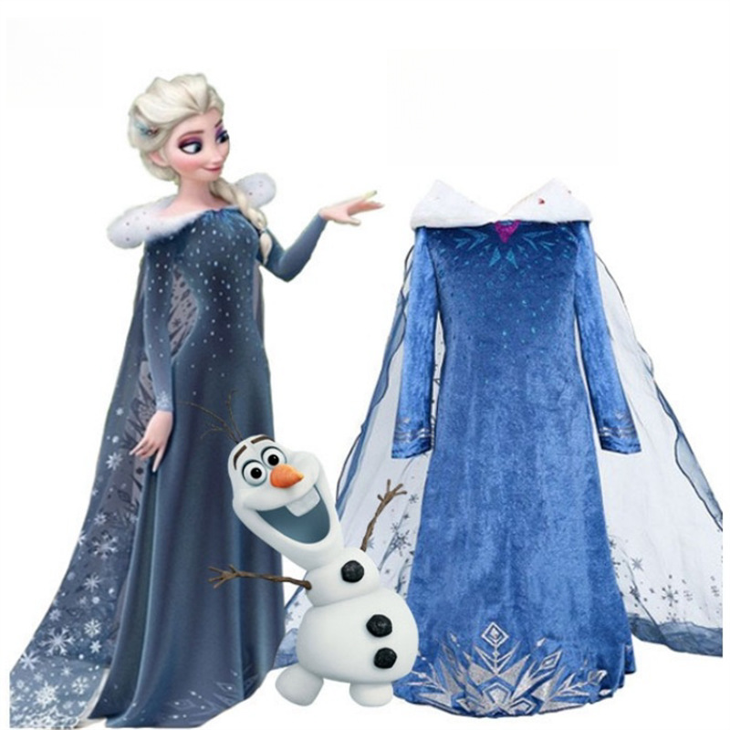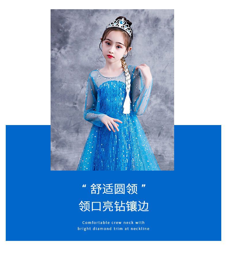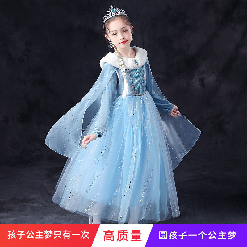 爱莎公主裙女秋冬款加绒加厚爱沙长裙子新款冰雪奇缘儿童连衣裙