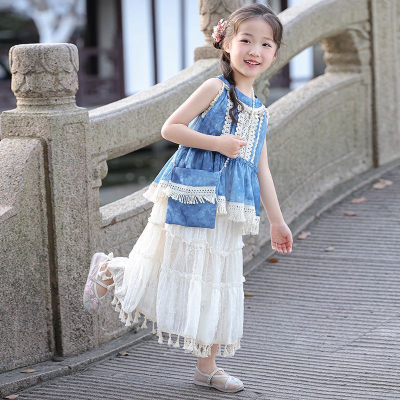 女の子 2025 民族スタイルの新しい絞り染め漢服子供ドレス国民風夏プリンセススーツスカートパフォーマンス服