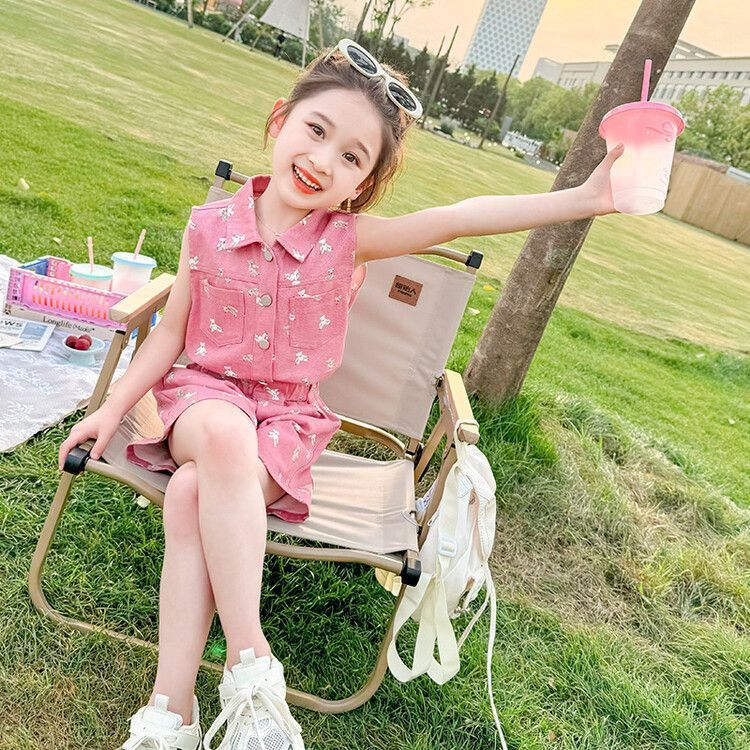 女の子スーツ夏 2025 新しいスタイルの小さな女の子ファッショナブルで超かわいい夏服韓国スタイルのルーズノースリーブスポーツ 2 点セット