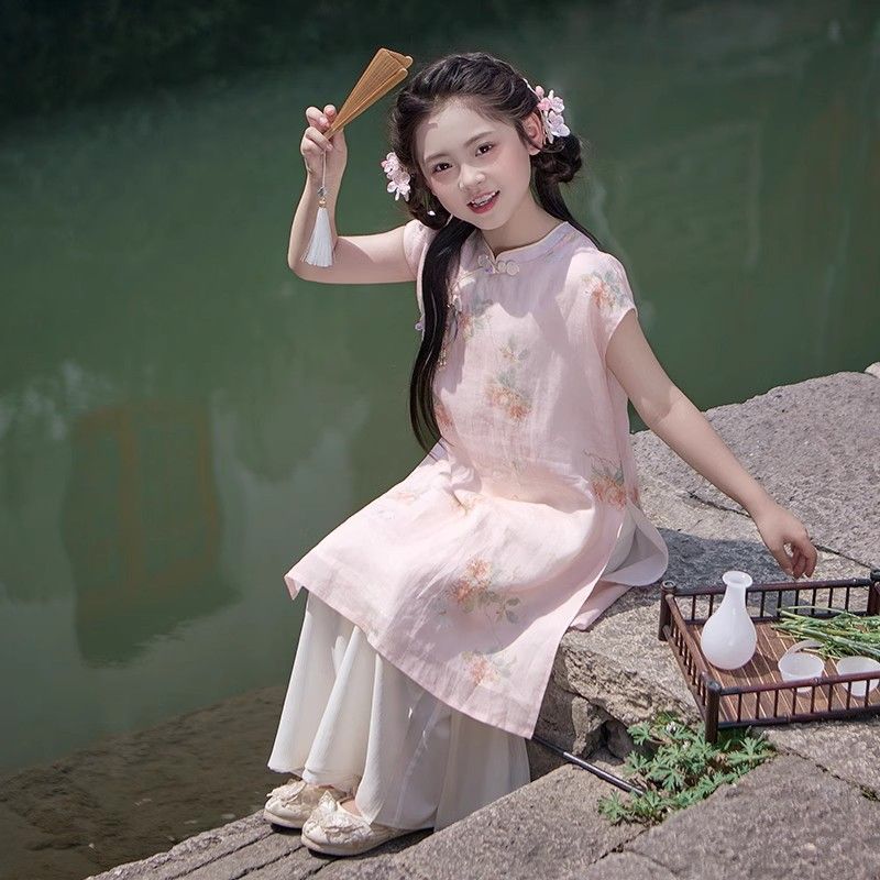 中国風チャイナドレス女の子 2025 スカート新しい子供の夏中国風漢服チャイナドレスドレス