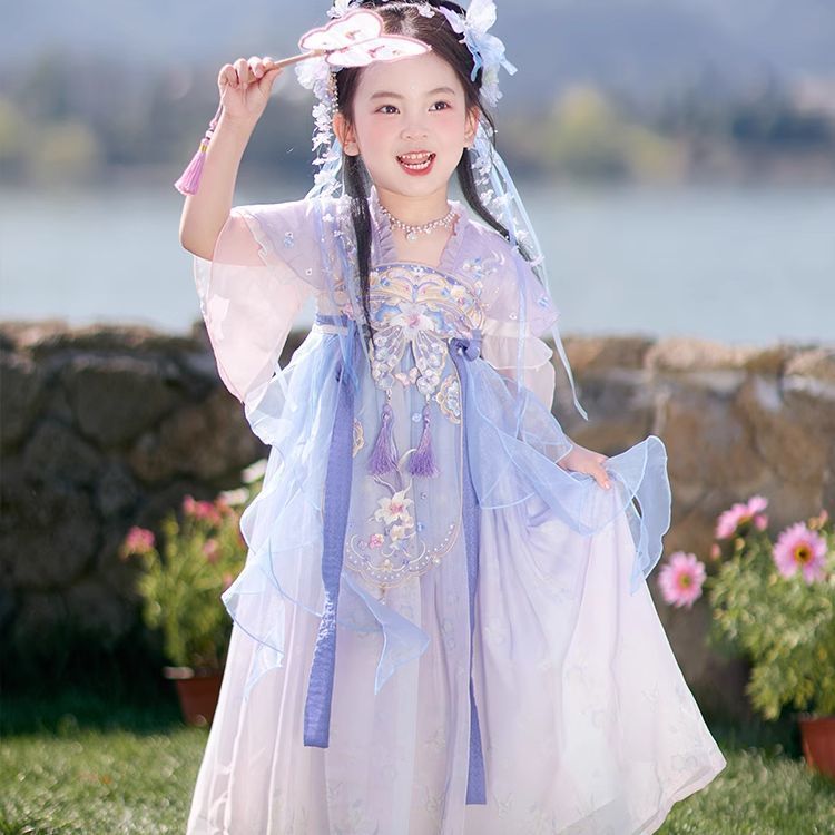 旗プラチナ漢服女の子 2025 新しい夏子供の古代スタイルの中国風のプリンセスドレス毎日着用できるスーパー妖精古代衣装唐スーツ