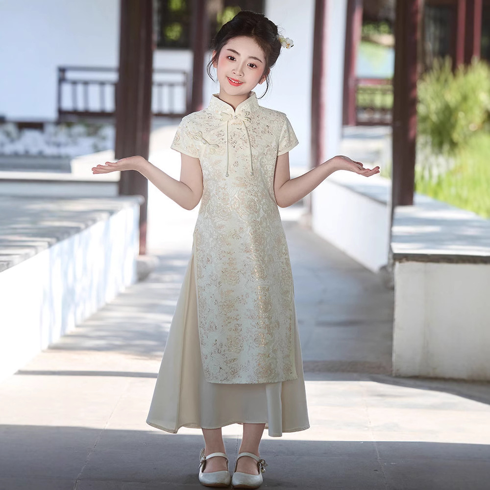 女の子のチャイナドレス、子供の中国風改良された新しい中国風の唐装ドレス、女の子の夏の古筝パフォーマンスドレス