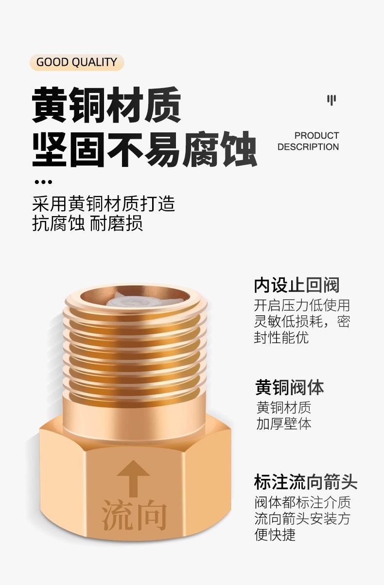 4分单向止逆调流阀马桶水管止回阀防反水倒流回水热水器止水阀
