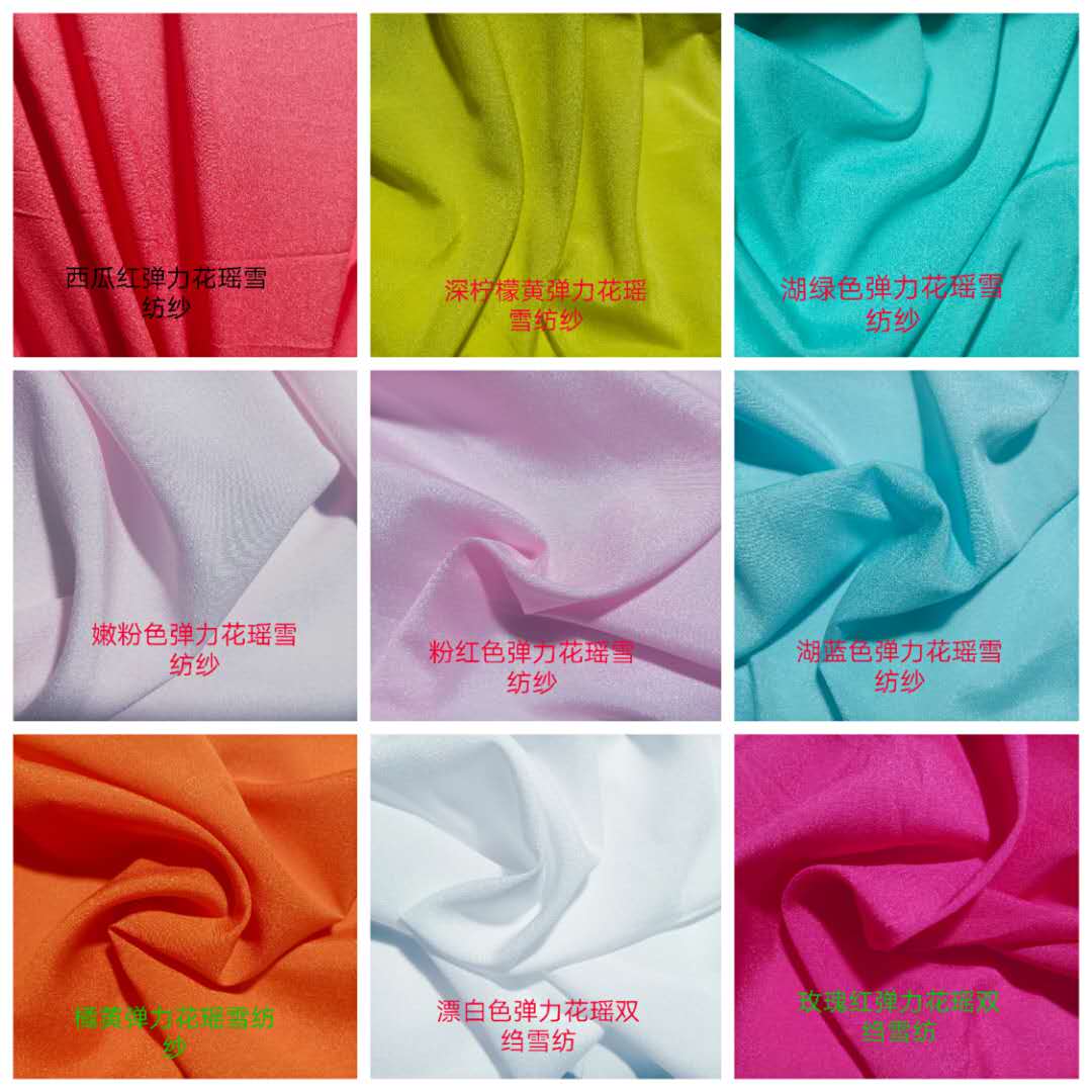 布料名称:高弹花瑶皱雪纺(横向拉微弹)