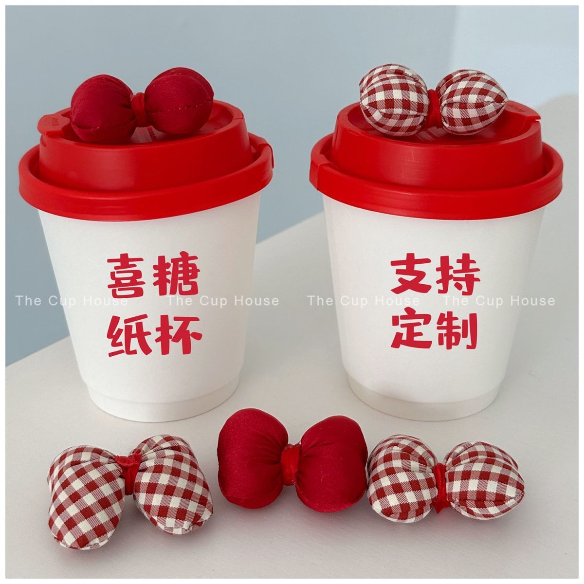 结婚带盖包装纸伴手礼纸杯喜糖杯杯喜糖红色咖啡杯小众订婚