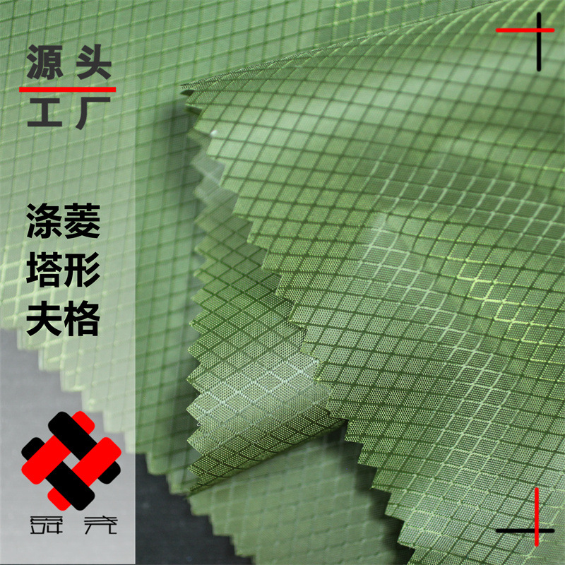40D尼丝纺超轻薄雨衣面料 尼龙66格子布 硅胶防水天幕收纳袋面料
