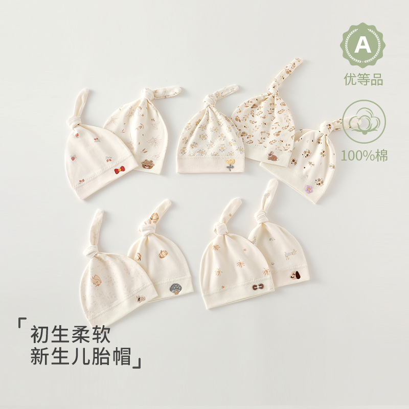 新生儿纯棉胎帽a类无骨男女宝宝可爱小帽子婴幼儿满月婴儿批发潮