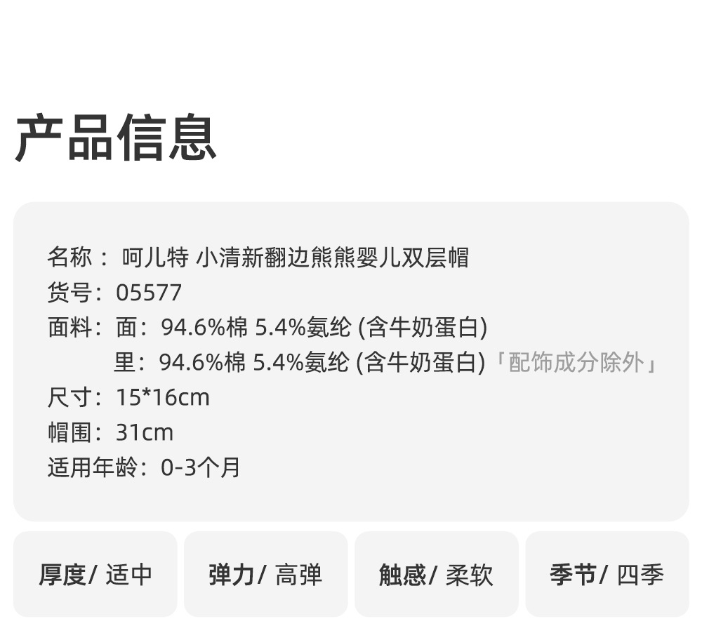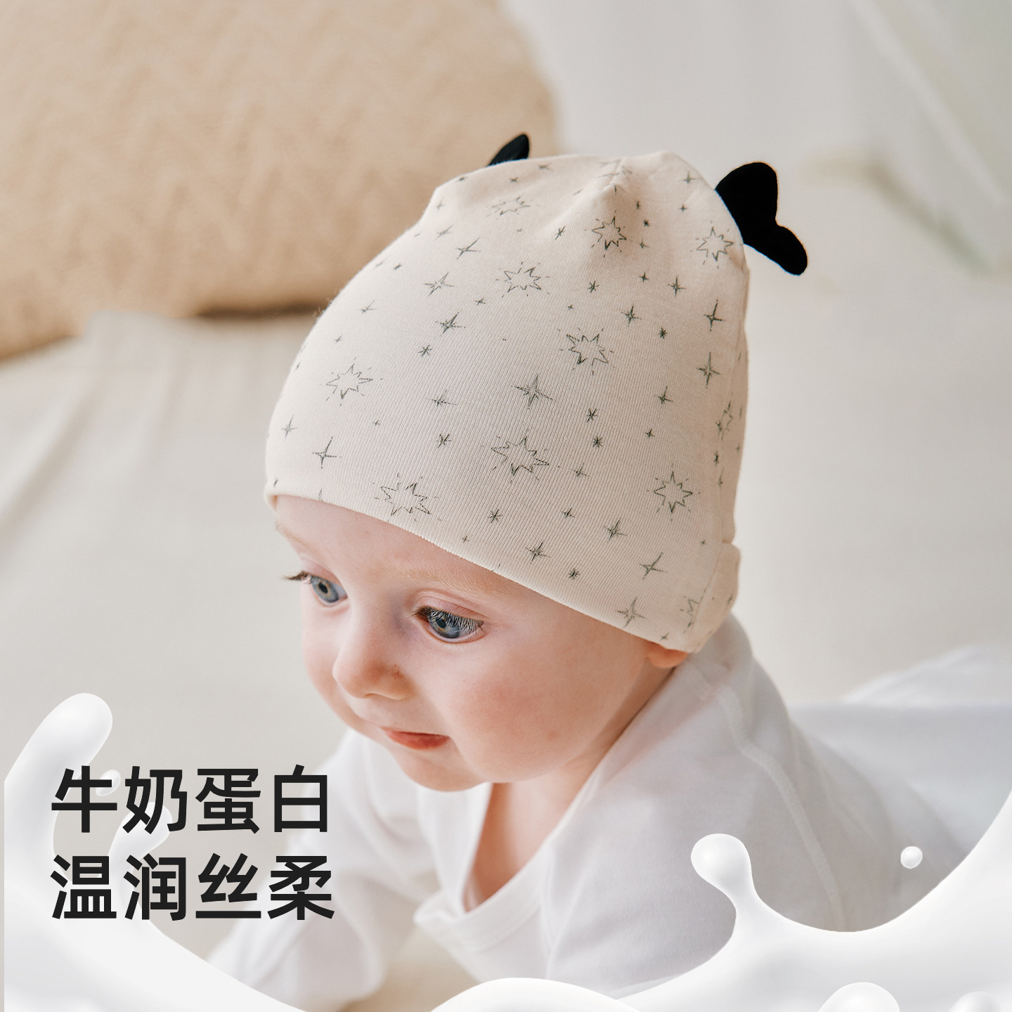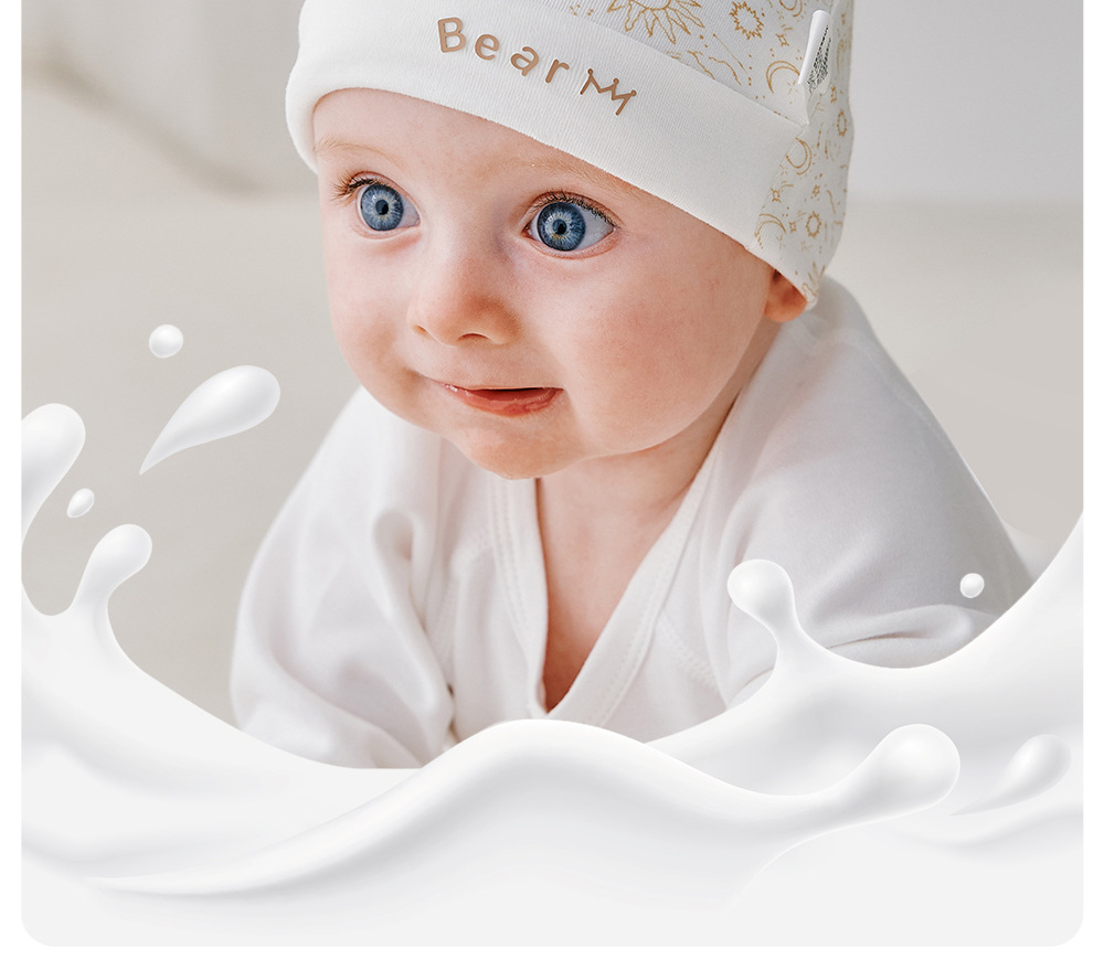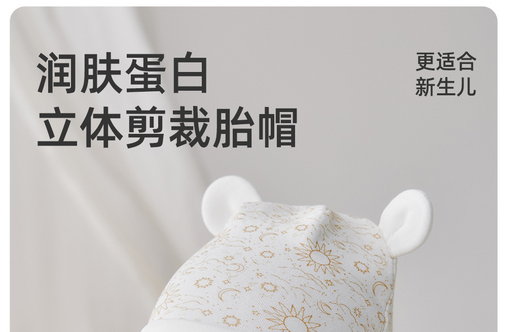 婴儿帽子新生儿月子帽宝宝春秋季胎帽棉双层秋冬幼儿帽含牛奶蛋白