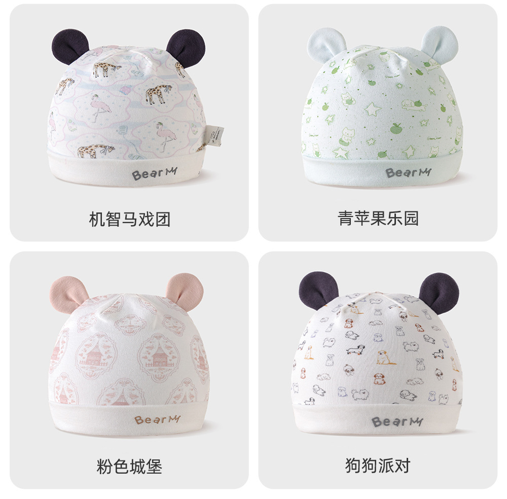 新生儿月子帽胎帽a类棉透气宝宝外出帽子大弹力卡通可爱婴儿胎帽