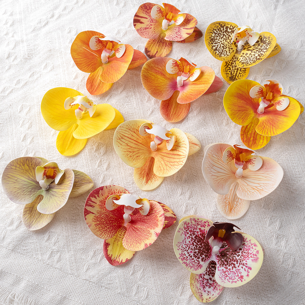 胡蝶蘭単輪花頭3d高級pu金色紫色diy単頭花壁部品花材シミュレーション花