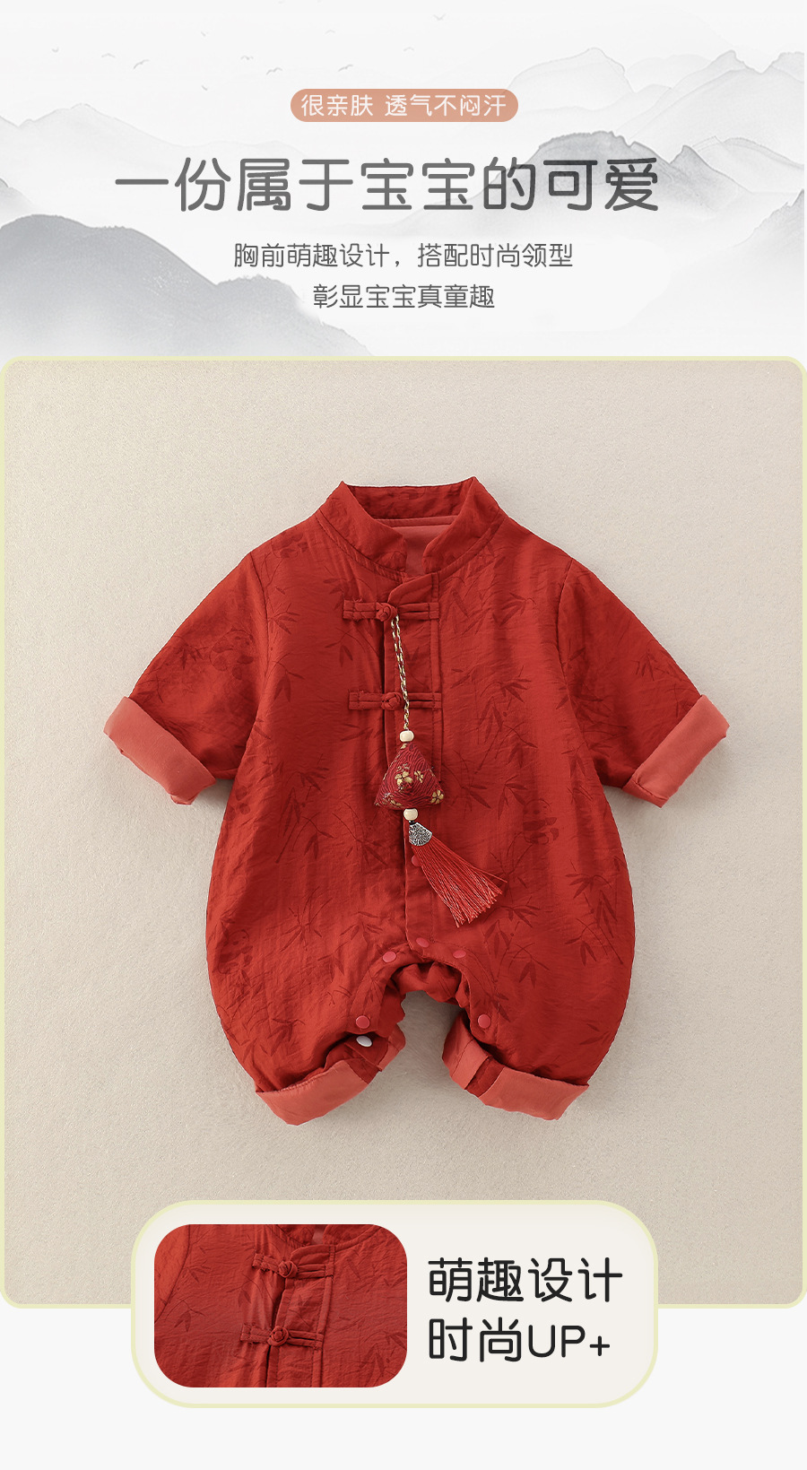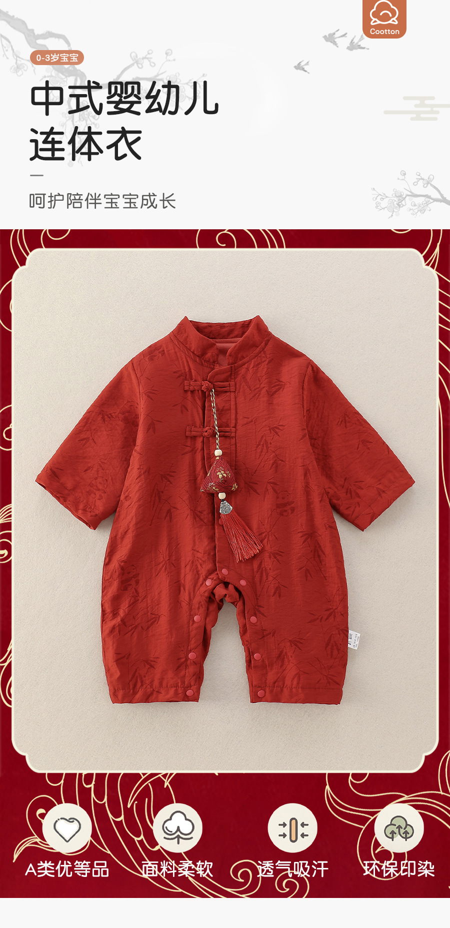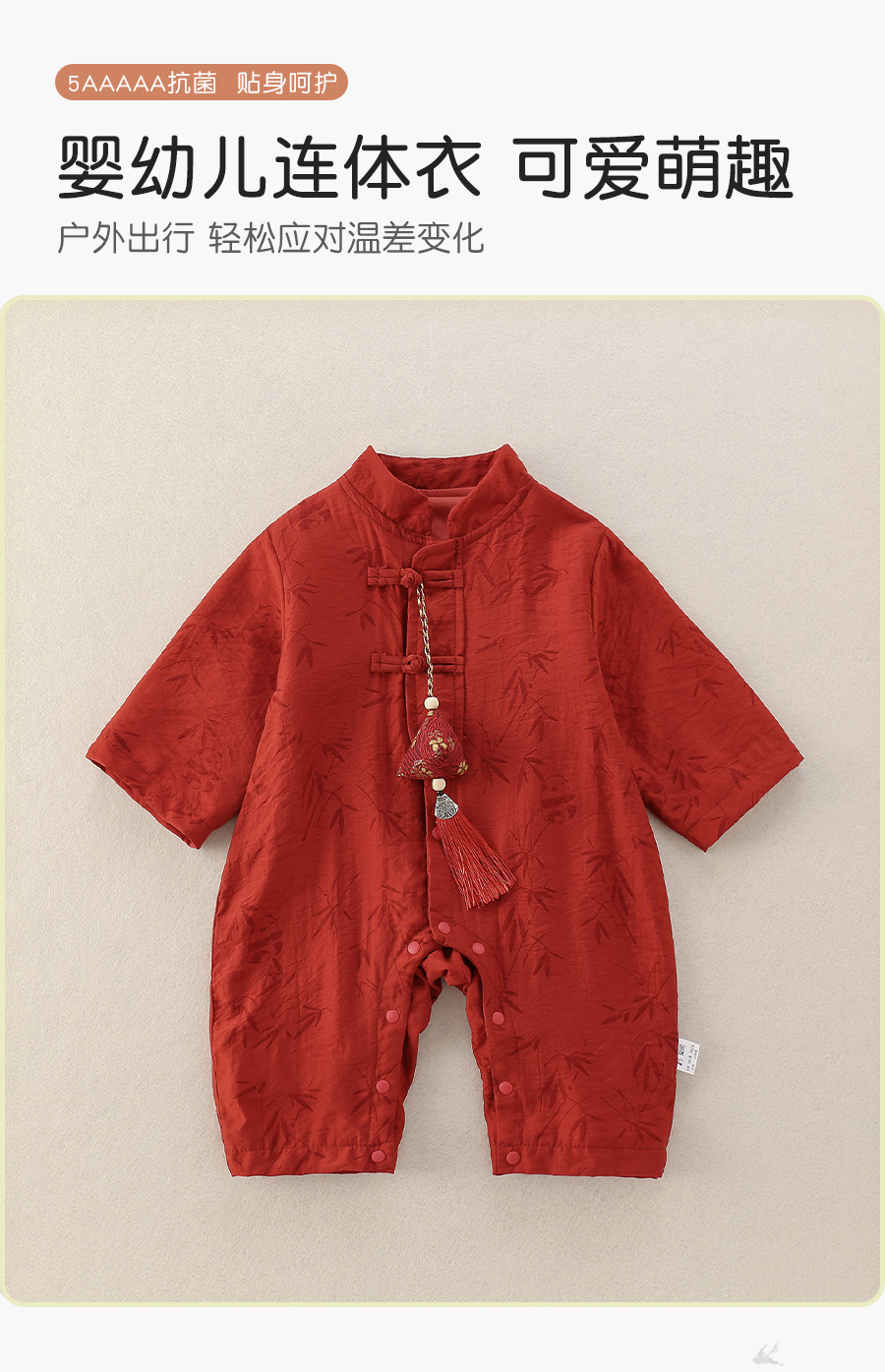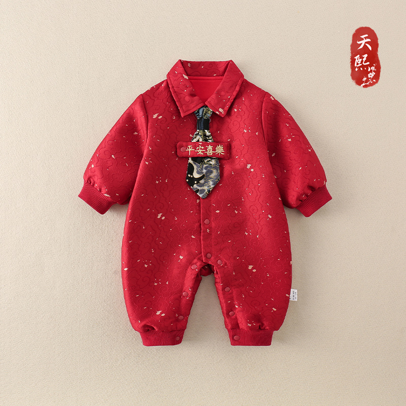25新生婴儿连体衣秋季新款中国风红色喜庆爬服周岁儿童百日宴礼服