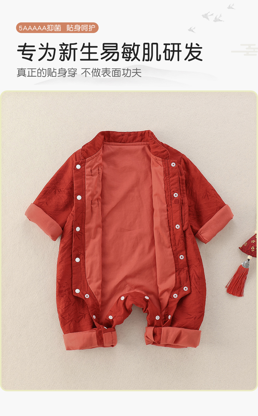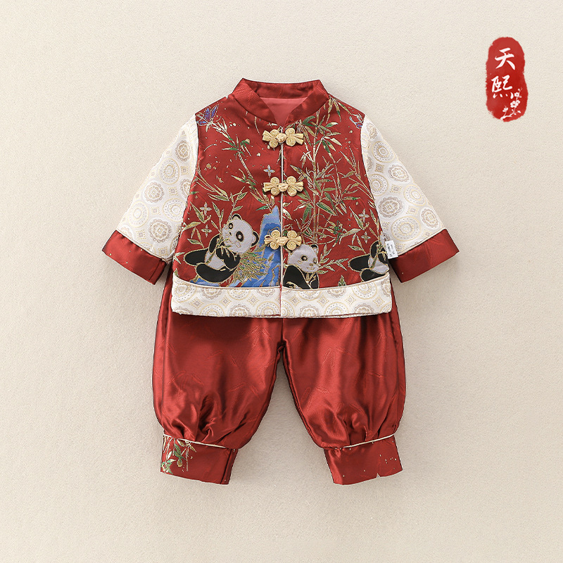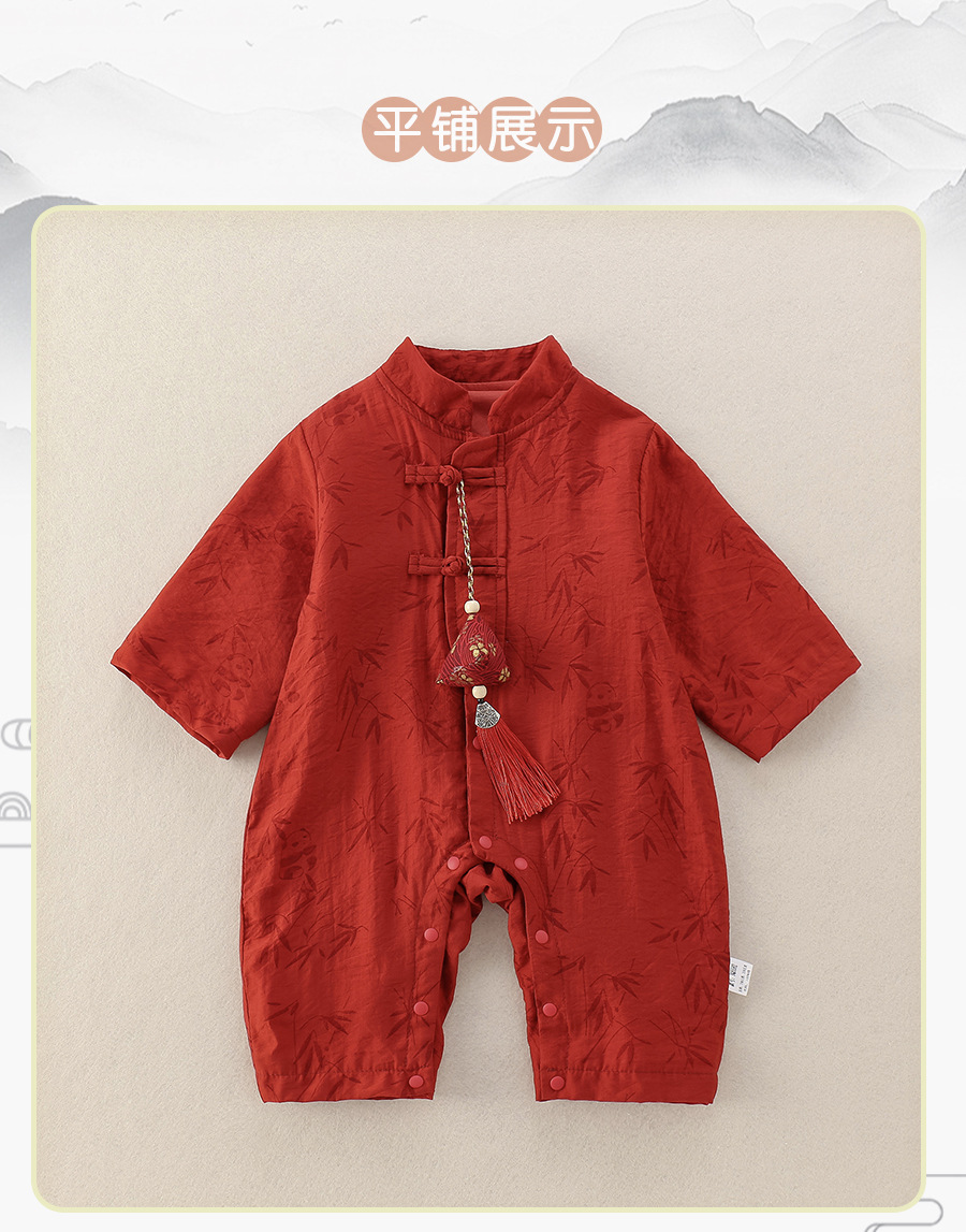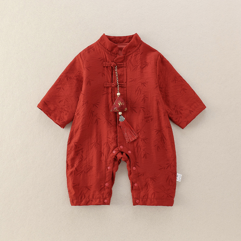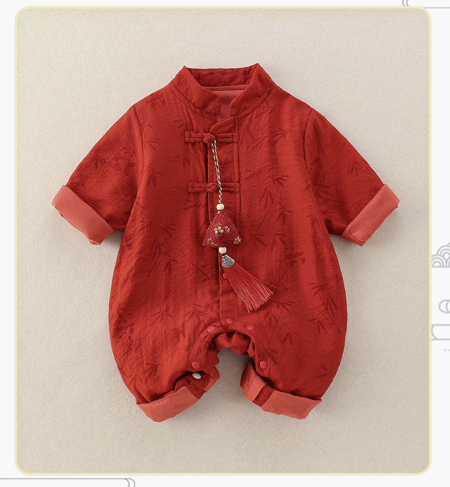 中国風の赤ちゃんの秋服、男の子の赤ちゃんの新しい中国風のジャンプスーツ、満月百日赤いローブ、春と秋のハイハイ服