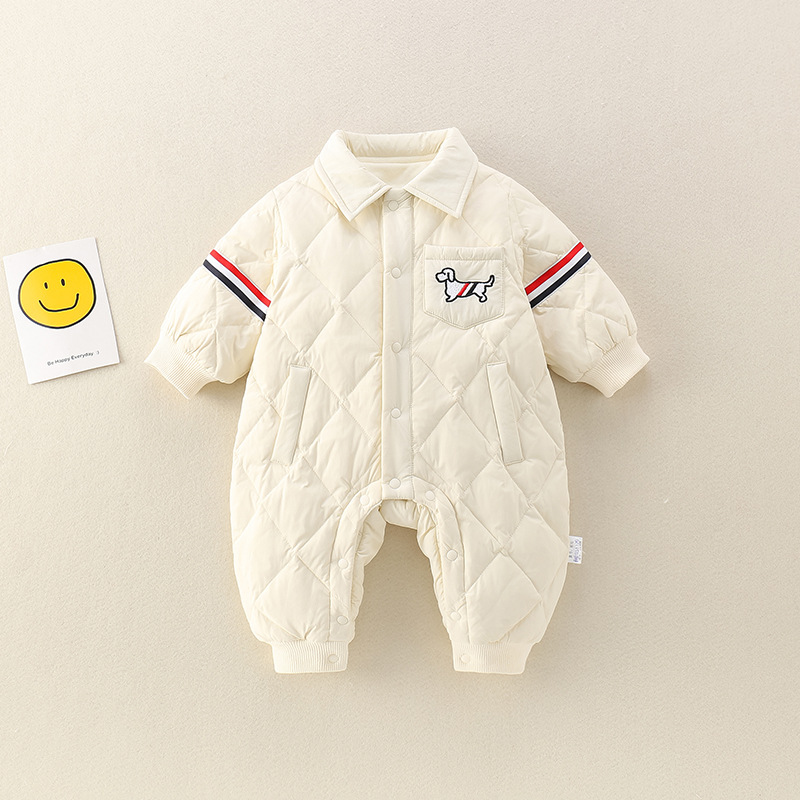 乳幼児の冬のダウンジャケットの空気が厚くて、連体服の男の子の赤ちゃんが暖かくて格好いいです。