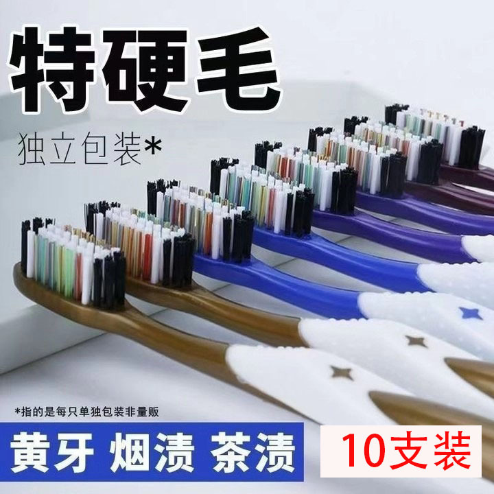 10支【新人立减5元】硬毛牙刷超硬耐用家用男士备用牙刷去烟渍软